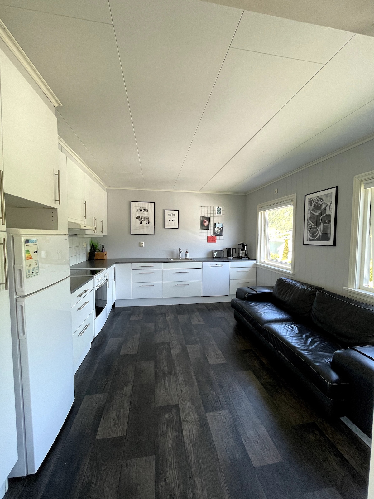 Cabaña con vistas fantásticas en un entorno tranquilo. A poca distancia del fiordo y un bote de remos está disponible en los meses de verano. La cabaña tiene una mini-cocina, nevera, un pequeño horno y microondas. No hay lavavajillas. Baño con ducha e inodoro, cables calefactores en el suelo. Sala de estar con grupo de salón, mesa de comedor y una acogedora chimenea. Los dormitorios son muy pequeños. Porche cubierto con muebles de exterior. La ropa de cama y las toallas no están incluidas. Cuando nieva, hay que aparcar en la carretera y caminar los últimos 50 metros hasta la cabaña. Aparcamiento en la cabaña en verano.