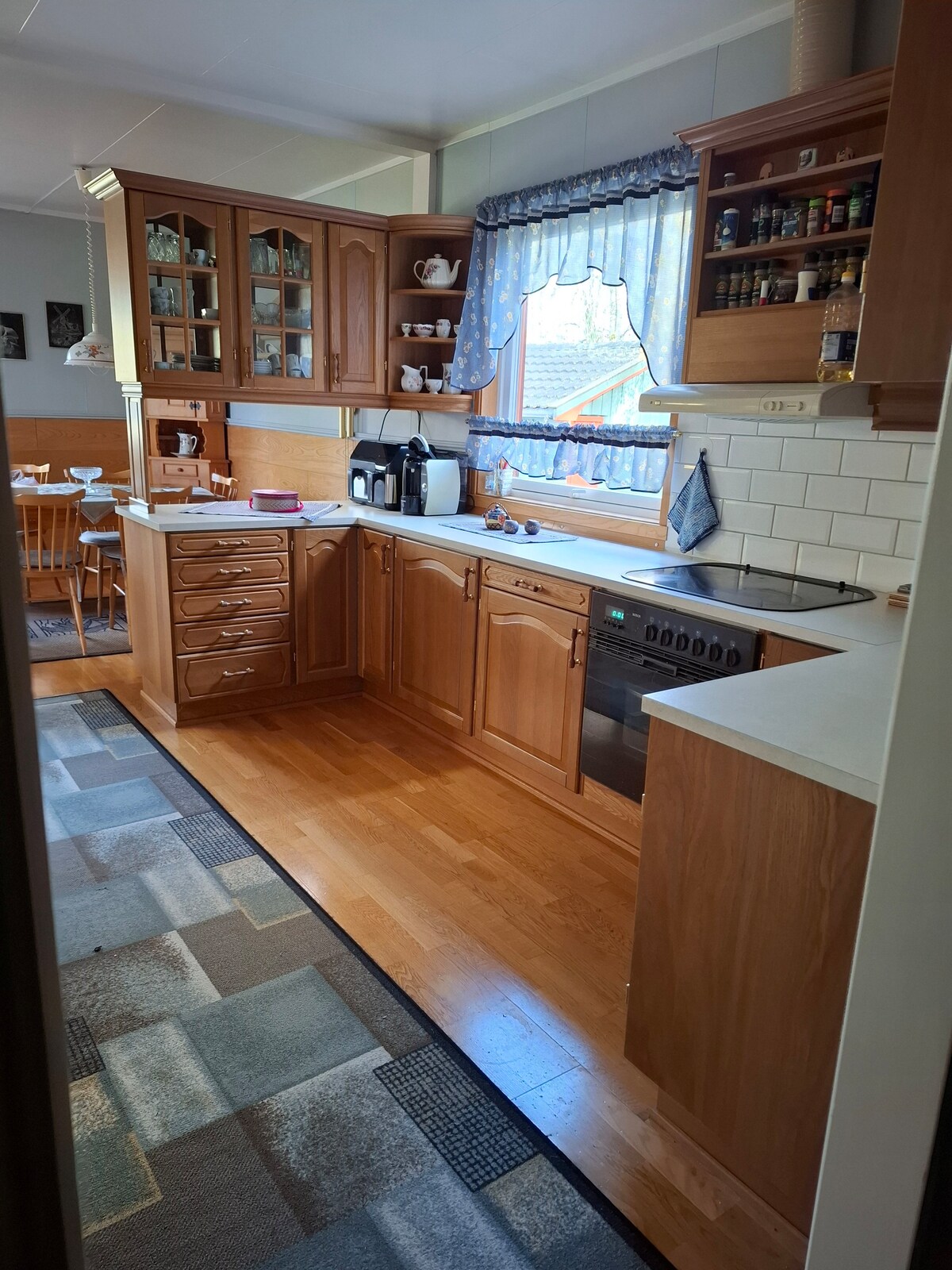 Stort hus på landet. Huset består av et romslig kjøkken, åpen løsning mot spisestue og stue i to plan. I tillegg trapp fra stue ned til kjellerstue. Bad med hjørneboblekar og dusjhjørne. Eget toalettrom. 3 soverom. Stor overbygd veranda. Sommerstid kan det benyttes egen uteplass med grillhytte, bålsted, basseng og plass til hengekøye. I tillegg 2 mindre uteplasser. Butikk i bygda. Flott badestrand, gode turmuligheter både til fots, sykkel og på ski. Huset ligger nærme gårdsbruk med dyreliv.