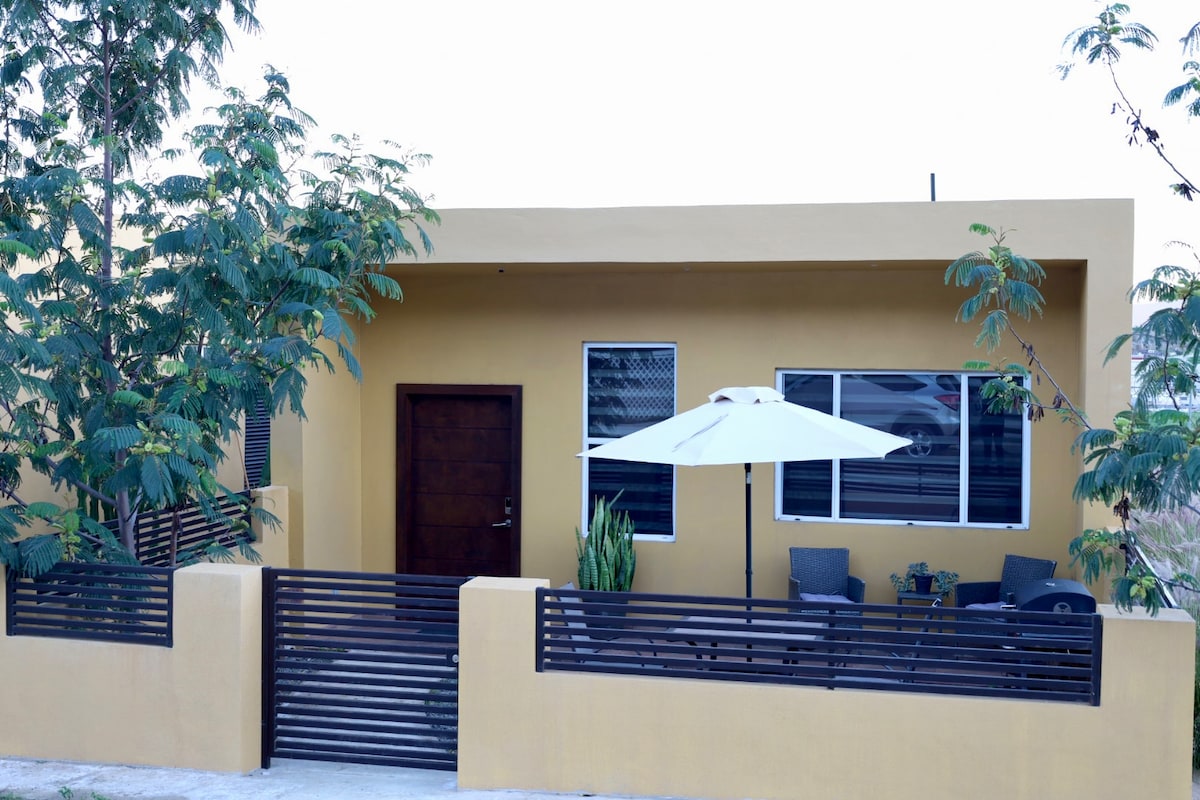 Casa independiente, muy acogedora, con todo lo necesario para una estancia cómoda y agradable. cuenta con sala ( sofá cama), TV con cable, Wi-Fi , estufa con horno, refrigerador, microondas, cafetera, calentador de agua, tostadora, licuadora y todos los utensilios de cocina y mesa necesarios, una recámara matrimonial y otra con dos camas individuales, 1 abanico de torre en cada recámara.