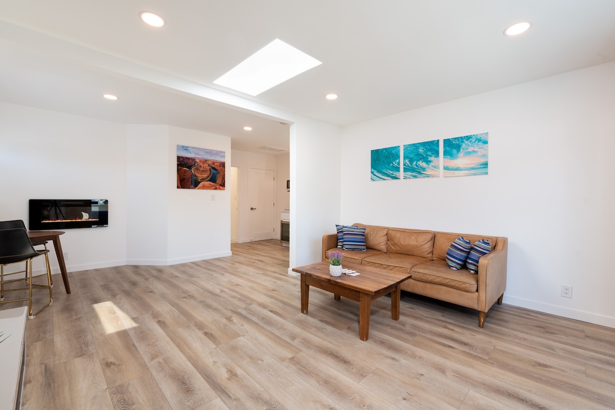 ¡Escapa de la vida cotidiana a Malibu Hideaway! ¡Ubicado en las colinas con impresionantes vistas a los cañones, montañas, el lago Sherwood y varias ciudades hasta donde alcanza la vista! Nuestros muebles están hechos a mano con madera reciclada de la soleada California. Nuestro colchón híbrido orgánico de lujo es de espuma/muelle para una mayor comodidad. Edredón mullido en los meses fríos. La suite cuenta con una bañera de estilo vintage, tocadiscos, chimenea de imitación, Keurig, microondas, mininevera, TV inteligente de 55 pulgadas, mesa/sillas y mesa de té antigua.