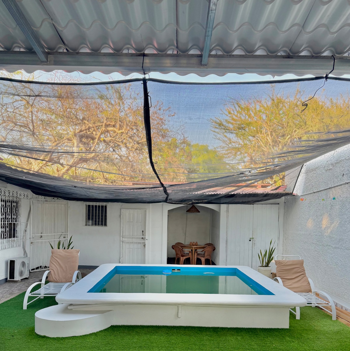Tropical House León es una casa privada de dos niveles con aire acondicionado que cuenta con una piscina profunda privada, un patio con hamacas, un bar tiki y un amplio salón en la planta superior con un bar completo. La casa tiene capacidad para 10 huéspedes e incluye 3 baños completos, Wi-Fi de buena calidad, tanques de agua de reserva y fácil acceso a los mejores lugares de León. Es un alojamiento excelente para amigos y familias que buscan privacidad, estilo y un lugar genial y relajante para escaparse de día o de noche.