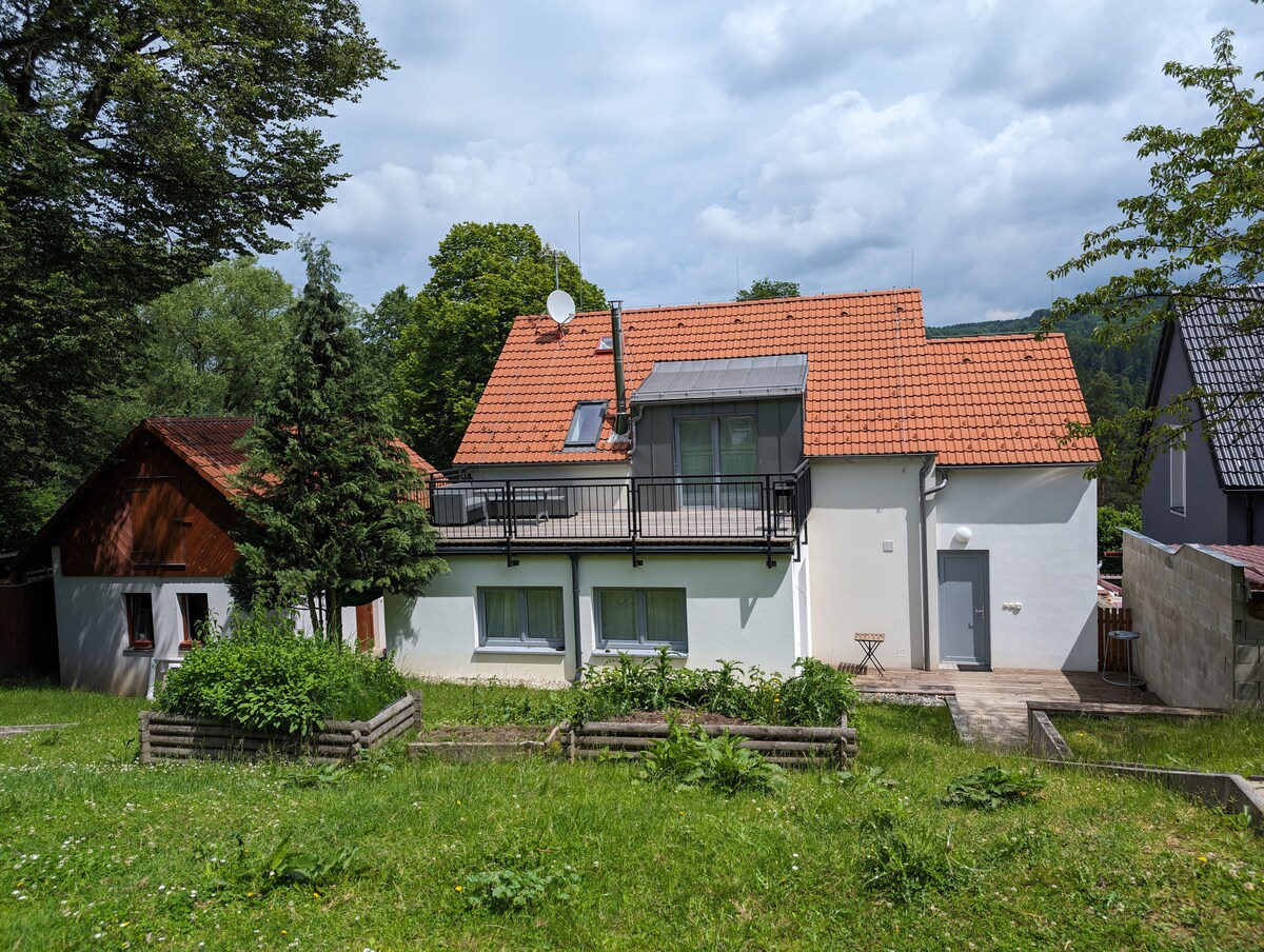 Vítám Vás v tomto prostorném a klidném ubytování. Domeček se nachází v zahradě plné květin, stromů, jahodníků, hortenzií, motýlů a zpěvného ptactva. Sdílet s námi budete zahradu. Milujeme zvířata, přírodu a psíka Pátka, který u nás bydlí. LIPAA je 3 minuty od autobusového nádraží. Do centra seběhnete z kopce za necelých 10 minut. Parkování je v ceně, městská daň 50,-Kč / os./ den.