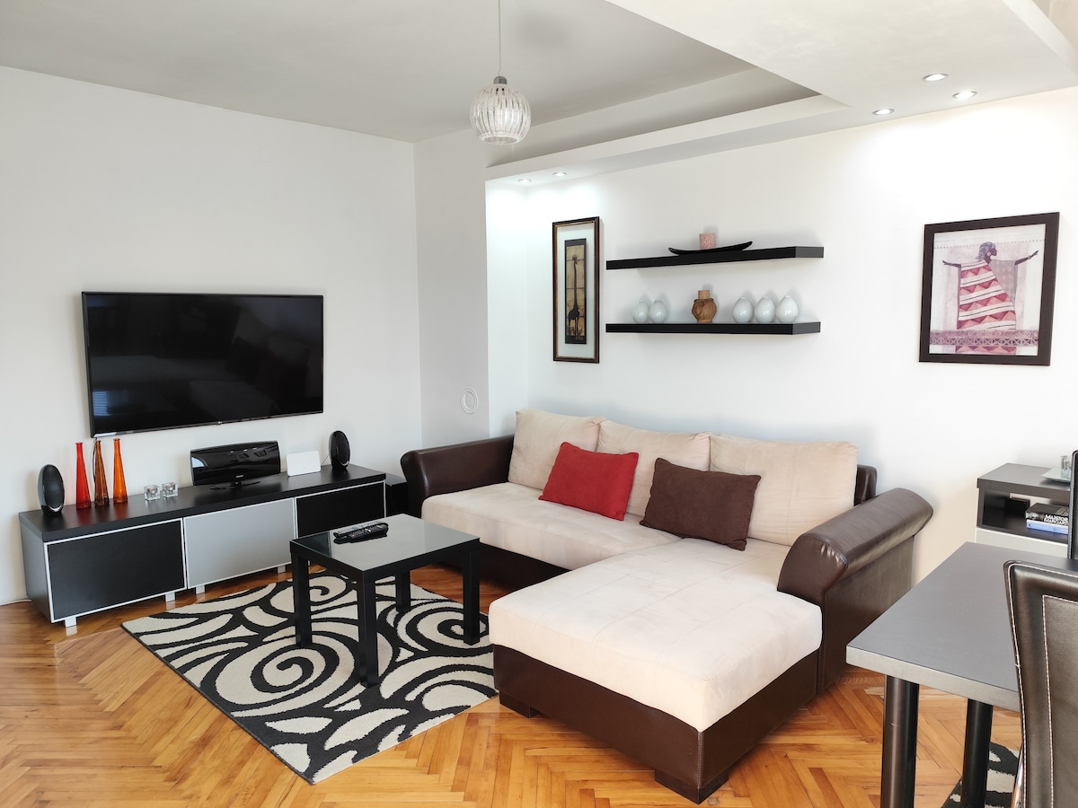 Fully equipped one bedroom flat in the center of the city of Niš, with free private parking lot on demand. All the furniture is modern and quality, all beds, linens, towels, pillows, dishes.... all! Everything in the studio is there for you and you can use it as long as you need, without any restrictions.