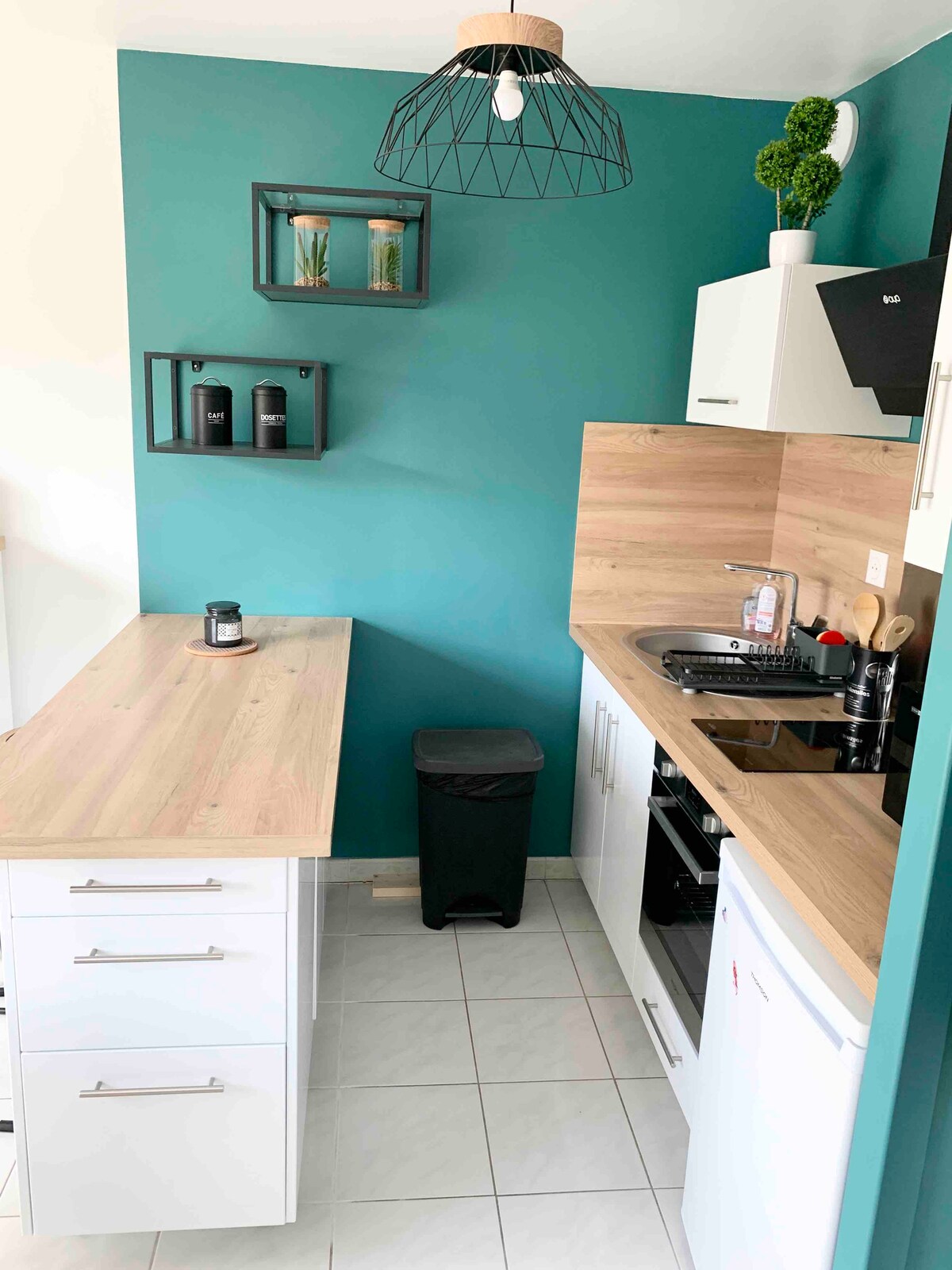 Apartamento T1 bis luminoso de 35 m² con todas las comodidades Planta baja en residencia segura para 4 personas, incluyendo 2 camas en salón comedor, tranquilo, cerca de todos los servicios 1 entrada 1 salón sala 1 BZ para 2 per 1 TV 1 cocina americana equipada horno microondas campana frigorífico cafetera hervidor tostadora vajilla necesaria 1 ch 1 cama 140 1 armario 1 SE 1 lavadora 1 aseo separado 1 patio cercado sin vecinos expuesto S E salón jardín tumbonas, 1 gar sótano estándar aparcamiento exterior gratuito. Tarifas según temporada NO FUMADORES NO ANIMALES