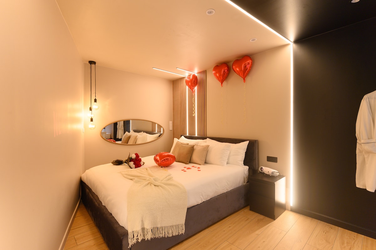 BIENVENUE À LA BULLE D’AMOUR Bienvenue dans notre charmante suite de luxe. Venez vous détendre et passer un moment hors du temps dans la Love Room "La Bulle d'Amour". Pour un anniversaire, un cadeau ou une surprise, offrez-vous une expérience de bien-être incomparable dans cette suite exceptionnelle. Notre suite est idéalement située pour vous permettre de profiter de tous les avantages de la ville tout en restant au calme.