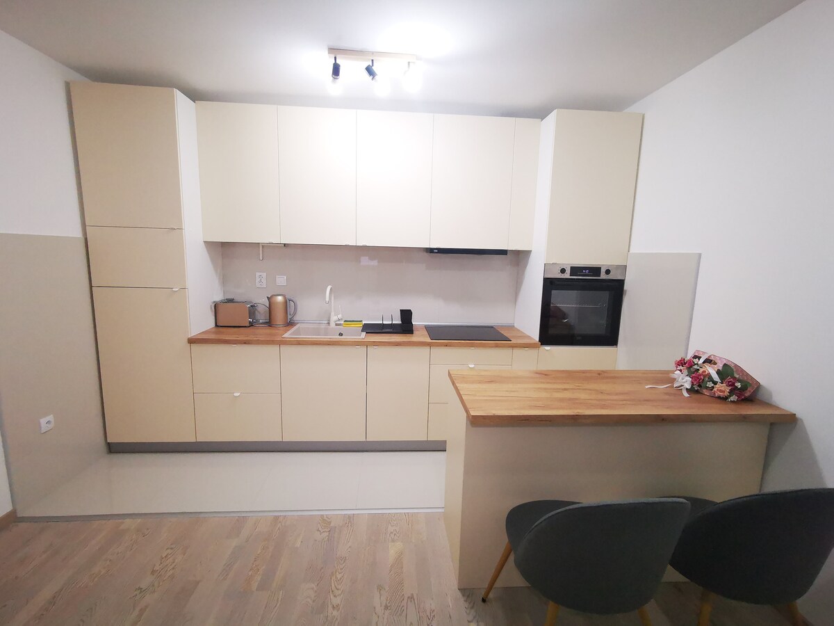 Beautiful and cozy apartment that will provide you good relaxation. Newly renovated with a location near highway. City center is around 4km away. One free parking spot in front of the house. Kick back and relax in this calm, stylish space.