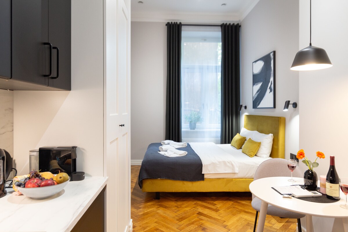 Wyjątkowy, w pełni wyposażony apartament w centrum Krakowa. Zlokalizowany w cichej uliczce 5 minut od rynku, a także w bliskości odgłównych punktów transportowych, takich jak Dworzec Główny, czy lotnisko w Balicach. Do Twojej dyspozycji zostawiamy wygodną część sypialnianą, komfortową łazienkę oraz aneks kuchenny z wyposażeniem. Istnieje możliwość zakupienia pełnowartościowego śniadania podczas zameldowania oraz parkingu za potwierdzeniem dostępności