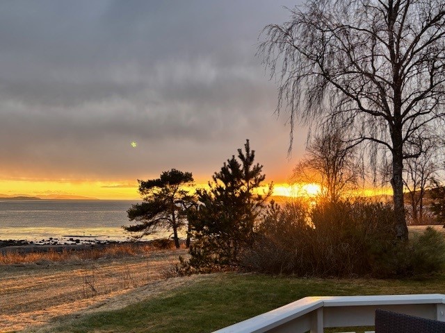 La casa se encuentra en un entorno rural y cerca del fiordo, a 5 km del centro de la ciudad de Levanger y a 3 km de E6 en Gråmyra. La casa tiene su propio jardín, cochera, sala de jardín y terraza, amplio salón, cocina grande y moderna, lavadero, dos dormitorios y dos espacios de oficina. Uno de los dormitorios tiene una cama doble, mientras que el otro tiene una litera familiar. Desde la casa hay una buena vista del fiordo.