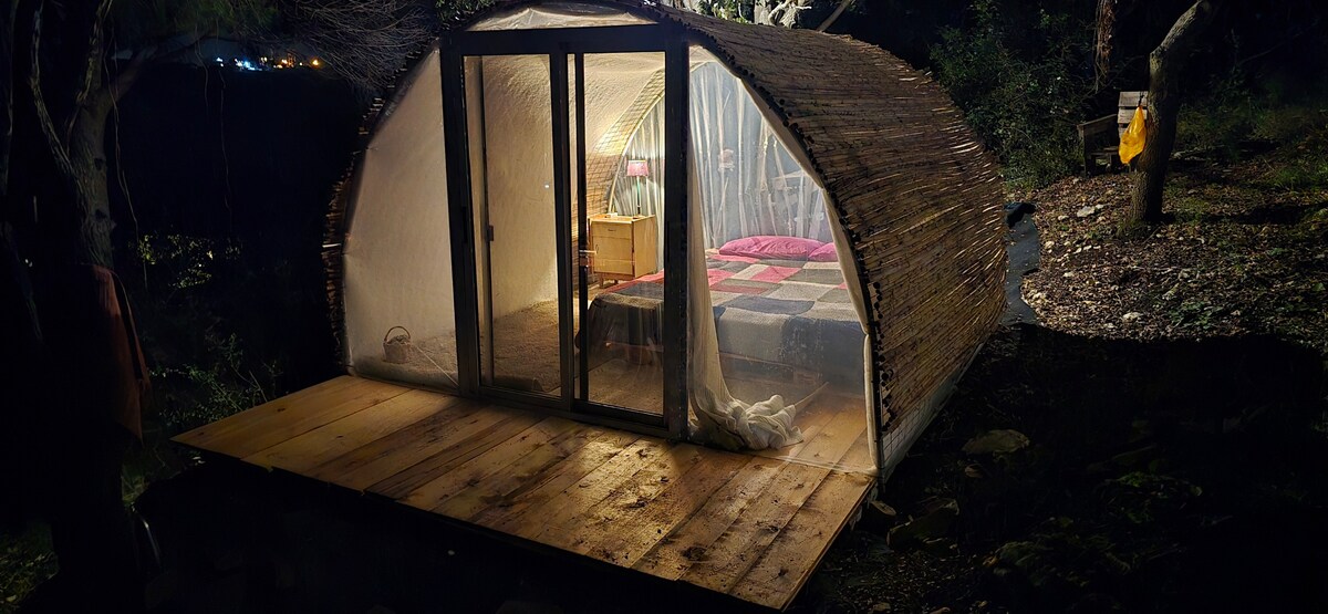 Glamping único en el mar Bienvenido a tobateva Un pedazo mágico de la naturaleza en la zona de Sharon que se siente como unas vacaciones en el norte o el sur. Aquí, en la costa, un glamping de diseño te espera con una mezcla perfecta de naturaleza, lujo y comodidad. • Tienda de campaña Boho Chic Design Bell • Una piscina de cristal indulgente • Fogata bajo las estrellas • Ducha y bar al aire libre • La playa oceánica más hermosa del país, a un paso • Amplio estacionamiento y total privacidad. Una experiencia de hospitalidad ecológica, natural y llena de estilo. ¡La libertad comienza aquí!