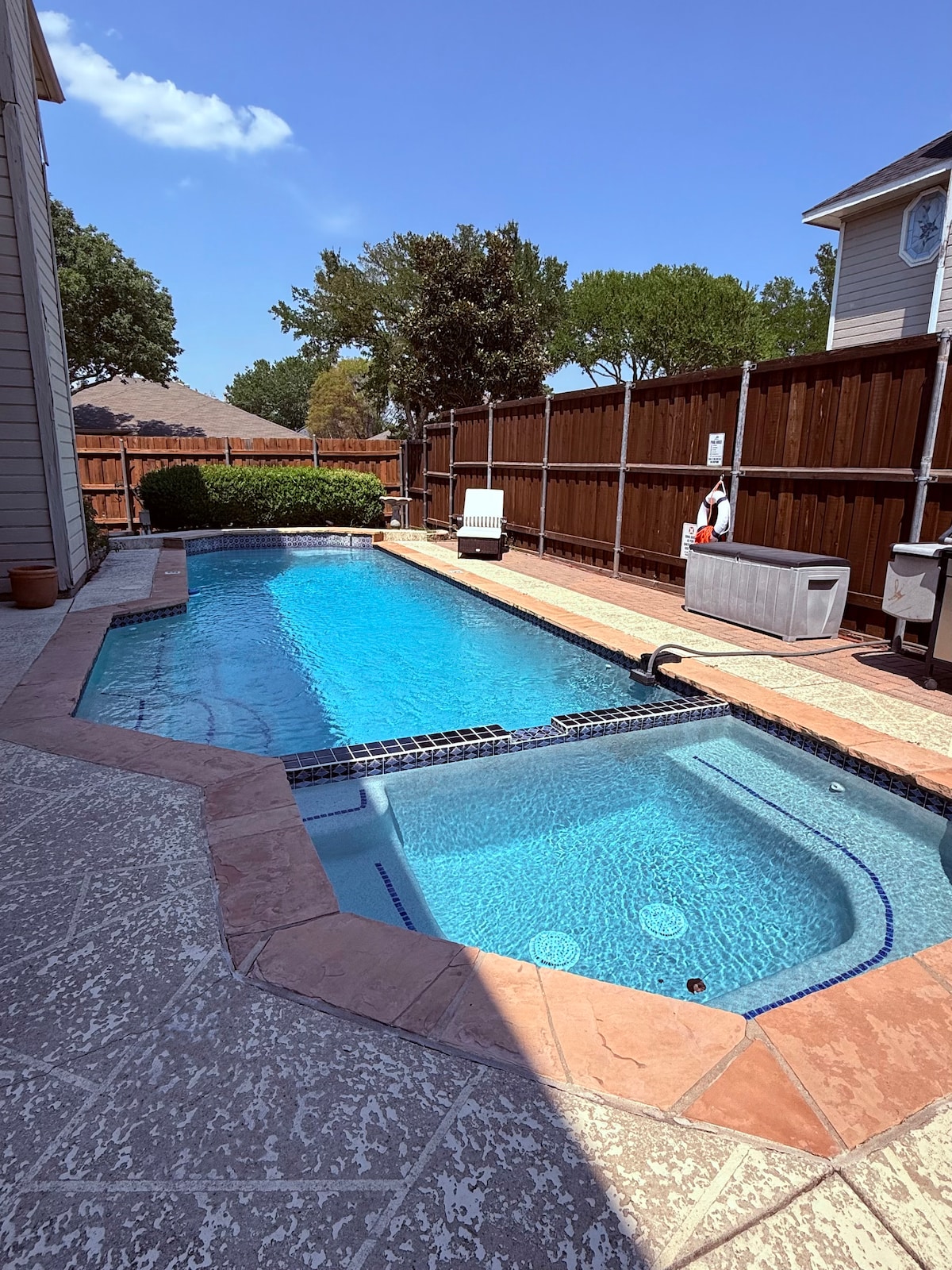 Esta elegante casa recién remodelada, limpia y espaciosa está cerca del aeropuerto DFW, el lago Lewisville y muchos bocados para comer. ¡Totalmente abastecido con NUEVA bañera de hidromasaje para 7 personas, parrilla Blackstone, cama elástica, mesa de hockey de aire de tamaño completo y máquina Arcade! EL GRAN cenador del patio trasero es un gran espacio para familias y grupos de amigos. ¡Acceso al garaje con carga para vehículos eléctricos!