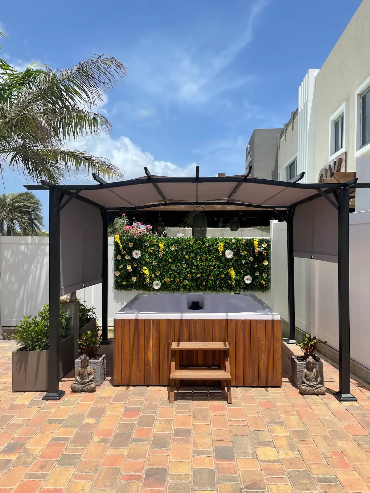 Bienvenido a Casa Carmela. Relájate en la piscina del centro vacacional y en el oasis al aire libre. Disfruta del día bajo las exóticas palapas o toma el sol. Sea cual sea tu placer, Casa Carmella tiene como objetivo complacer. Está a pocos pasos de Palm Beach, una de las playas mejor valoradas del mundo. También se puede ir andando a restaurantes, casinos y a disfrutar de la vida nocturna. Viene con una cómoda cama tamaño king, parrilla de gas, cocina totalmente equipada, tumbonas, toallas de playa y nevera. Todo esto es tuyo y solo tuyo.