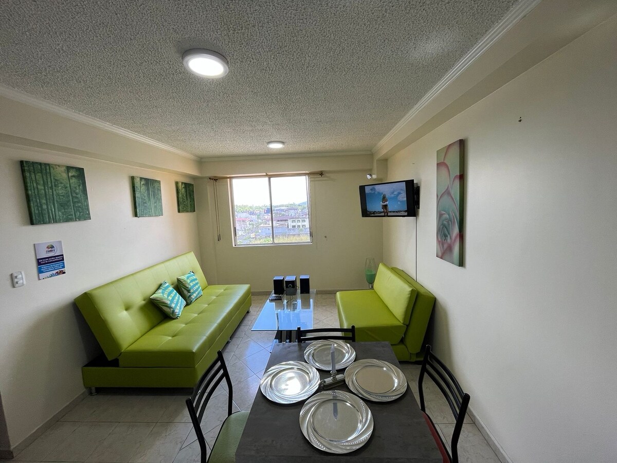 Disfruta de una estadía de lujo en este elegante departamento ubicado en una urbanización privada cerca de los mejores restaurantes , centros comerciales y más atracciones una zona estratégica con parqueadero privado, comodidad , con ayuda de Alexa una maravillosa experiencia te espera! Nuestro departamento •El departamento tiene una cama de 3 plazas •Jacuzzi •A/C •Alexa •En la sala 2 sofá cama de 2 plazas Disponibilidad para más personas en el departamento Te esperamos