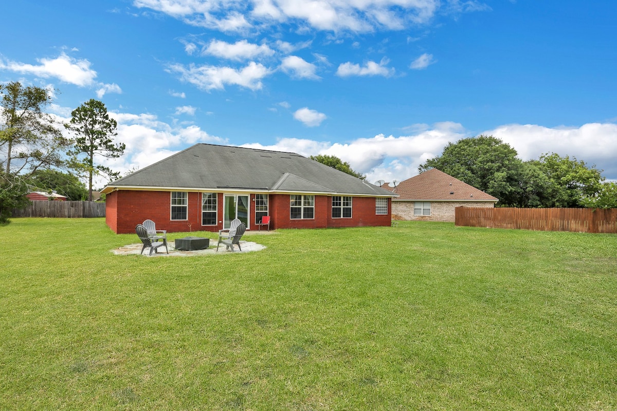 Bienvenido a nuestra dulce y encantadora casa convenientemente ubicada en el corazón de Hinesville/Fort Stewart, Georgia. Esta casa de tres dormitorios y 2 baños se encuentra en un barrio tranquilo. Disfrutarás de una cocina totalmente equipada, lavadora y secadora, toallas suaves y frescas, un televisor inteligente 4K de 55 pulgadas, WIFI de alta velocidad y mucho más. Afuera, un bonito patio trasero cercado con fogata es ideal para barbacoas o relajación. Los huéspedes disfrutarán de la privacidad y seguridad de esta propiedad única. Solo se permiten perros pequeños.