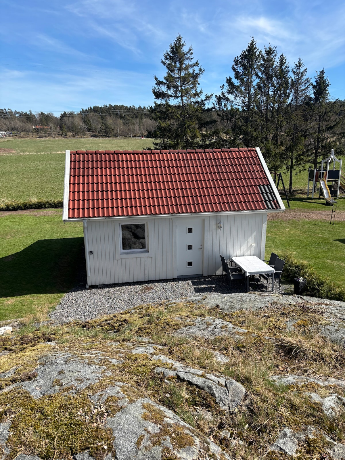 Relájate en esta acogedora casa de principios del siglo XX con todas las comodidades modernas. Tienes wifi rápido en tu propia conexión, lavavajillas y lavadora. ¡Perfecto para disfrutar del bosque y de la fantástica naturaleza que lo rodea! Saluda a los pollos, gatos y patos de la granja. Si quieres un poco de emoción, también es posible ir a Gotemburgo, Trollhättan o la costa.