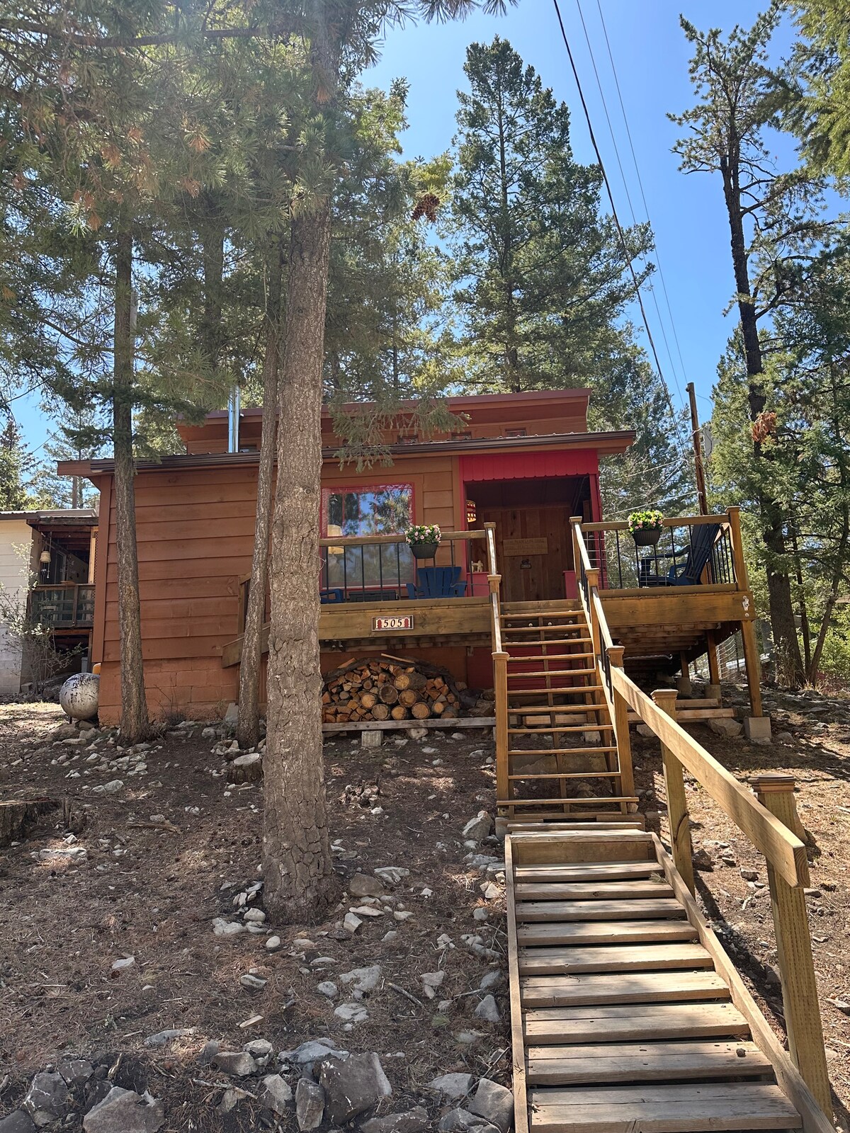 Bienvenido a nuestro Neck of the Woods, una acogedora cabaña ubicada en el pueblo de Cloudcroft, NM. Esta hermosa cabaña está a poca distancia a pie del centro de la ciudad, haz una parada en Nosey Water Winery para una cata de vinos, visita The Lodge para un tratamiento de spa muy necesario o trae tus palos de golf y juega en el campo de 9 hoyos. Si vienes a pasar tiempo al aire libre, hay varias rutas de senderismo en los alrededores. O simplemente siéntate con un libro y tu amigo de cuatro patas en el amplio porche.