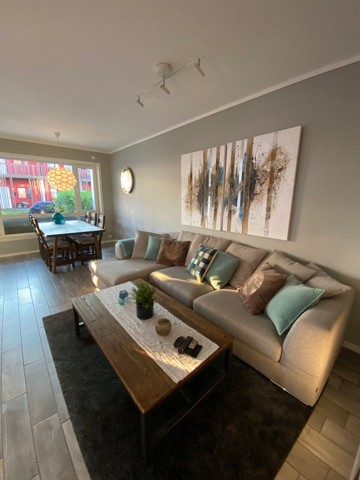 Lugar céntrico y acogedor para la mayoría de las personas. Un dormitorio grande con 150 camas para 2 personas, un dormitorio pequeño con 90 camas que también se puede utilizar como oficina. Además, hay un sofá cama con un colchón superior con capacidad para 2 personas por una tarifa adicional de 250 NOK, cada una. También hay una posibilidad adicional para otro huésped que quiera dormir en el piso por un pago adicional. ¡Anfitriona acogedora! Zona tranquila y amigable con proximidad a todas las comodidades y a la naturaleza. ¡Un paraíso para las vacaciones y el trabajo!