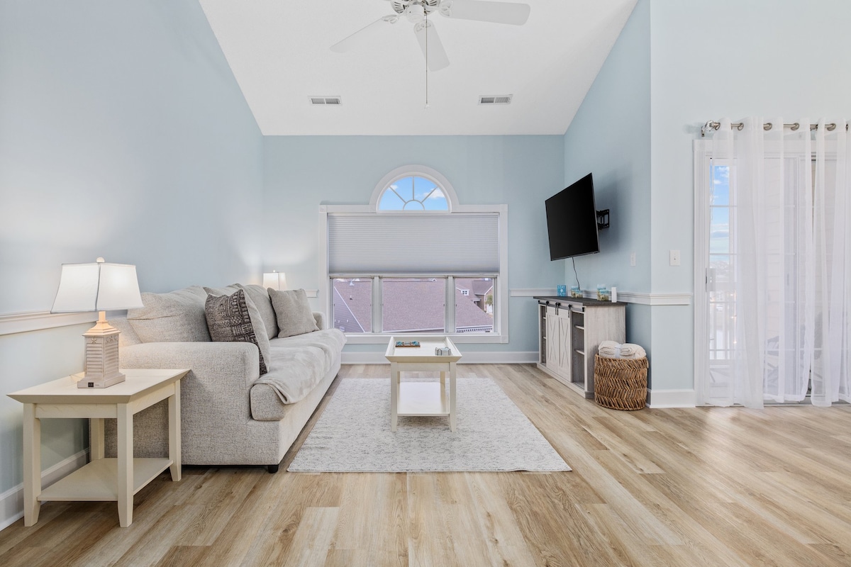 Apartamento bellamente decorado con temática de playa OSW1 en la planta superior, entrada sin llave de 3 dormitorios y 2 baños frente al mar con vistas panorámicas al mar. Esta unidad cuenta con una cocina totalmente equipada, camas listas con todas las sábanas y dos baños con un juego de toallas por huésped. Muebles nuevos, dos televisores grandes montados en la pared, sillas de playa, sombrilla y toallas de playa están disponibles para tu comodidad. Alquileres semanales de sábado a sábado en temporada. No se permiten carritos de golf ni remolques. No se permiten mascotas.