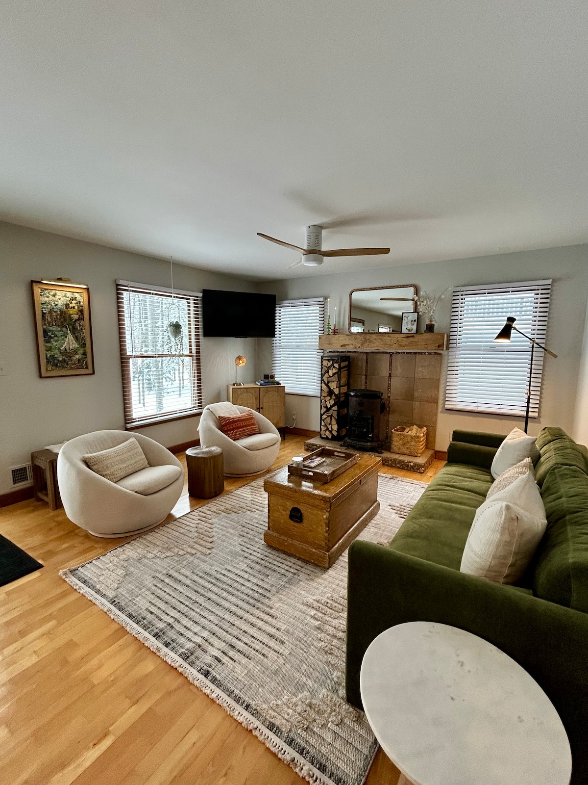 Bienvenido a nuestra casa de campo de los años 40 cuidadosamente diseñada en el bosque a pocos minutos de Good Harbor Beach. Este tranquilo refugio te da acceso al vino, la comida y la naturaleza por los que es conocida la península de Leelanau. Disfruta de la chimenea al aire libre, la parrilla de carbón, el wifi rápido, la televisión inteligente y la cocina bien equipada. El sonido viaja, así que, por favor, respeta a nuestros vecinos. Lo sentimos, no se permiten fiestas ni eventos. Todos son bienvenidos.