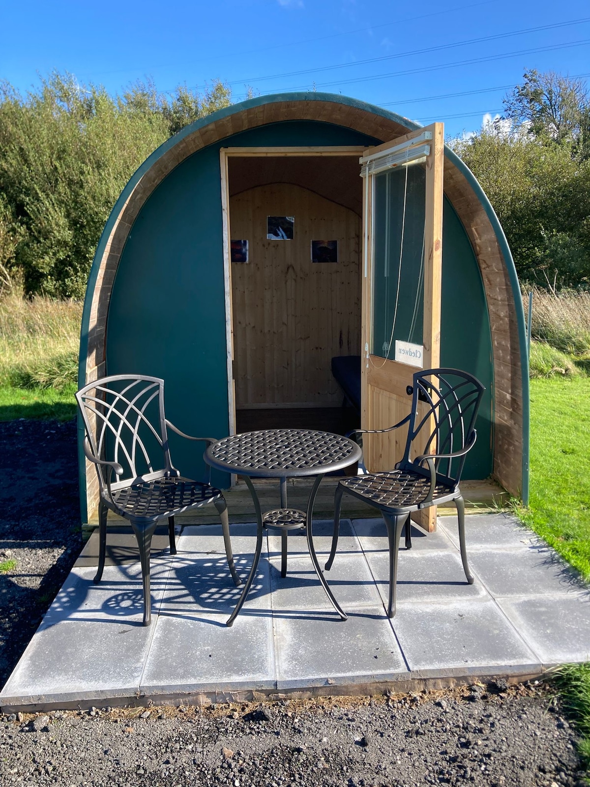 Plas Onn Isa Glamping Pod se encuentra a 1,1 millas de Abergele, hogar de “I 'm a Celebrity Get Me Out Of Here” en el castillo de Gwrych, a pocos pasos. Nuestra cápsula tiene capacidad para 2 adultos, mayores de 18 años. No se permiten mascotas. Calefacción por suelo radiante. Hay una zona para dormir con cama doble de planta abierta con TV y sala de estar con mesa y sillas. Se proporciona ropa de cama, tiene baño privado, pero no toallas de baño. La cocina tiene fregadero, nevera pequeña, microondas, hervidor de agua, tostadora, té, café y azúcar suministrados con cápsulas de leche Uht.