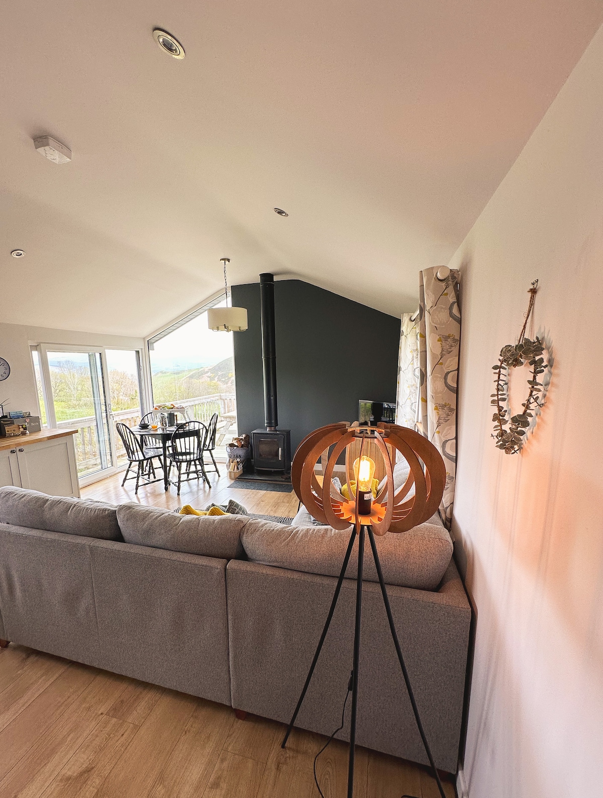 The stylish newly built but quaint cottage sleeps 2-4, is spacious and comfortable with everything needed in a home from home. Beautiful countryside views can be enjoyed from the lounge and bedroom. The large south facing patio and enclosed garden leads to a lush meadow for stunning sea and mountain views. Close to Aberystwyth yet enjoying a peaceful and stunning location the setting is open countryside with delightful wildlife all around. A Stream nearby adds to the charm of the place.