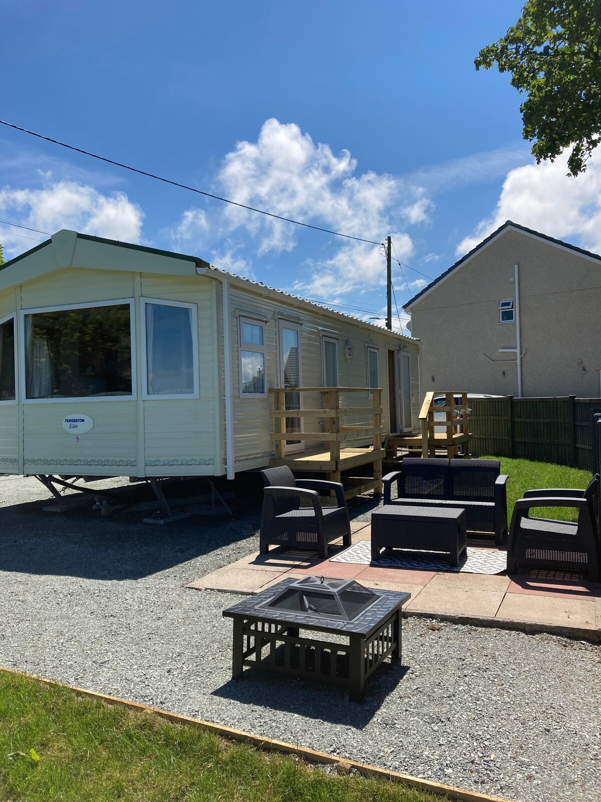 Caravana estática en un entorno tranquilo. Ubicado en 1,5 acres en la parte inferior de nuestro jardín privado seguro. Muy rural, apto para perros (ver normas de la casa) y tranquilo. Una gran base para descubrir y explorar la hermosa isla de Anglesey. Estamos a poca distancia en coche de impresionantes playas y del sendero costero. Luego regresa para una noche relajante en el patio para tomar una copa y contemplar un increíble cielo oscuro para observar las estrellas.
