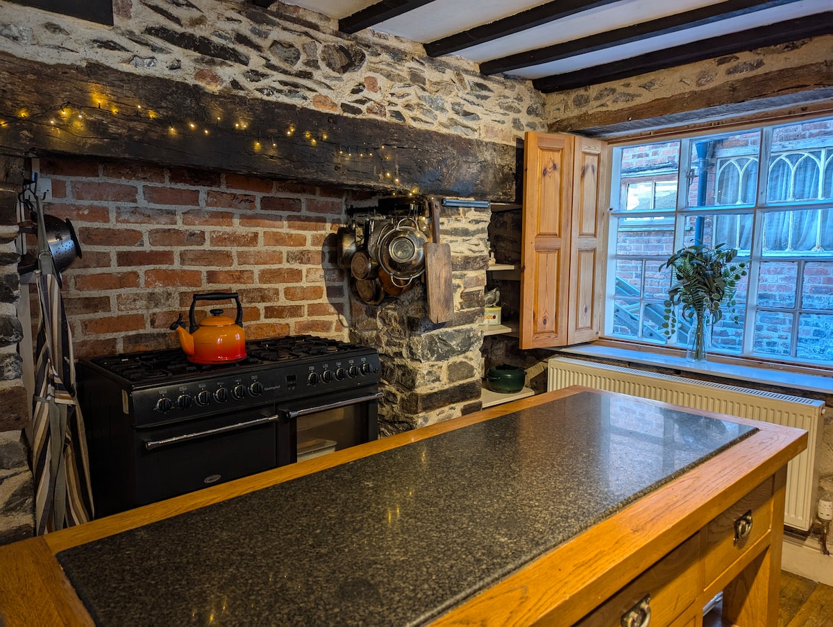 Hollybush Cottage está llena de carácter con un jardín y un arroyo. Está rodeada de bosques y a 100 metros del sendero Offa's Dyke con acceso a kilómetros de hermosos paseos, ideal para cualquier persona que quiera explorar Shropshire y el centro de Gales. Tiene capacidad para 4 personas, hay una cama tamaño king y dos individuales en el segundo dormitorio. Recientemente reformada en todas partes con una nueva cocina totalmente equipada y un baño. La sala de estar tiene una estufa de leña y TV QLED. Banda ancha de fibra súper rápida en todas partes.