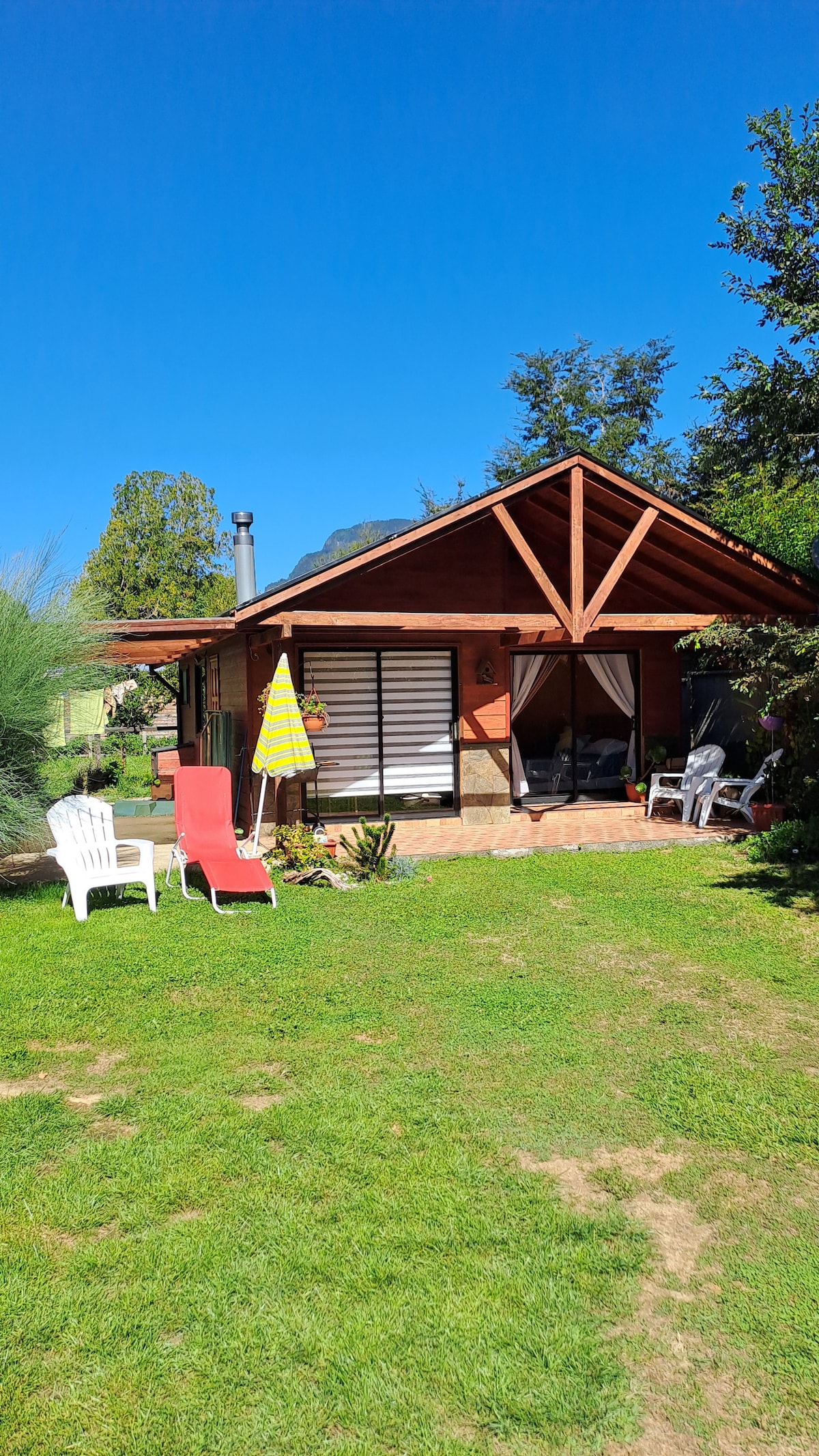hermosa cabaña ubicada a la orilla del río, con bajada incluida donde podrán relajarse escuchando el sonido del agua, ademas mencionar que la cabaña esta completamente nueva y full equipada