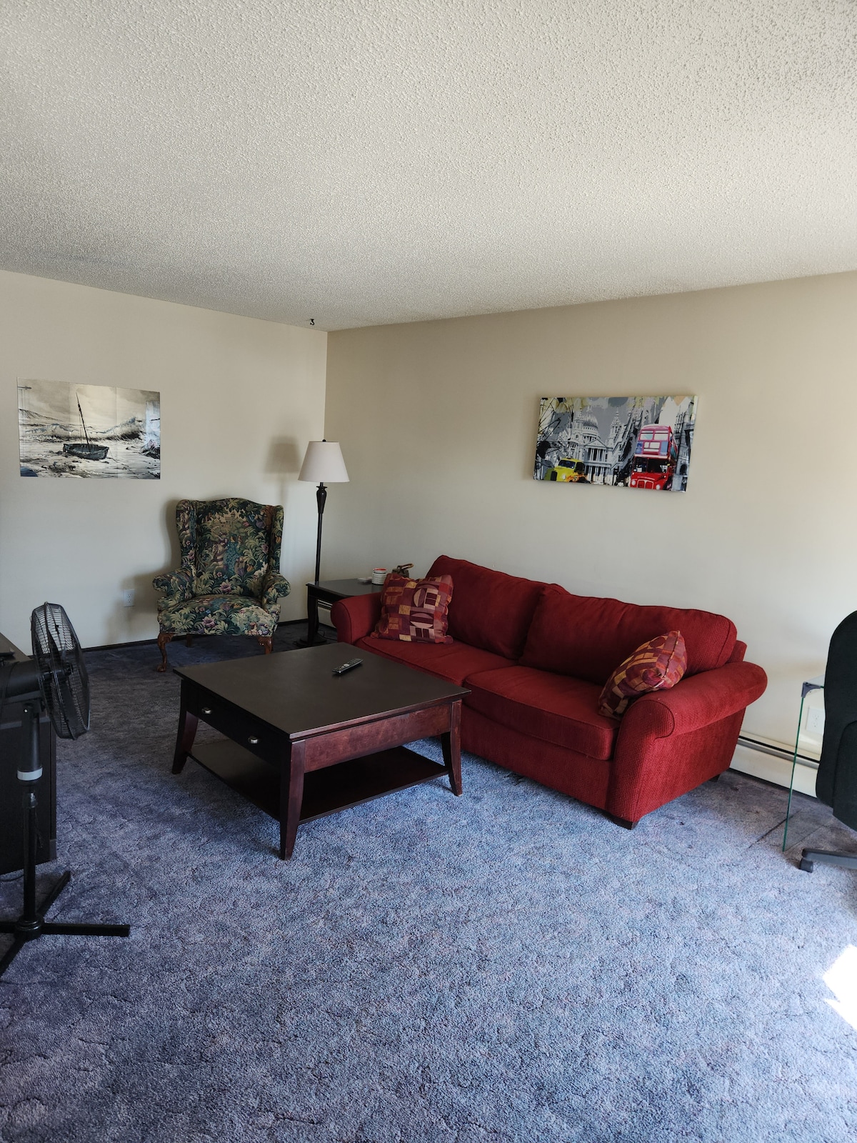 Esta unidad de la planta baja de 2 dormitorios tiene todo lo necesario para vivir y trabajar cómodamente durante su estancia en Lloydminster. Tiene ventanas nuevas en todas partes, una cama tamaño queen en ambos dormitorios y una cama individual adicional en la sala de estar para alojar a más personas. Incluye ropa de cama y toallas. Incluye Shaw 600 Wifi, paquete completo de cable con Smart TV, sofá muy grande y extra cómodo y sillón, mesa/sillas de comedor y una cocina totalmente equipada con ollas, sartenes, cubiertos, utensilios y platos.