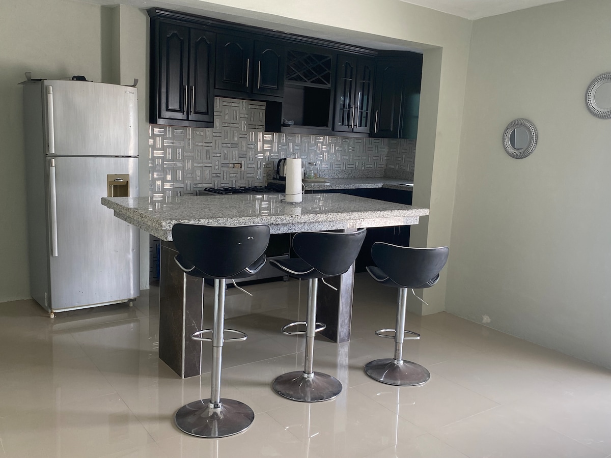Relájate y desconecta en este alojamiento tranquilo y elegante. Estamos a solo 30 minutos de Ocho Ríos y a 45 minutos de Kingston por la autopista de peaje. Sin mencionar que estamos a 5 minutos a pie del famoso Grant's Jerk Center, a 5 minutos de Fj's Smokehouse y a 25 minutos de Bush Trails Excursions Tours. El apartamento es ultramoderno y cuenta con todos los servicios para tu comodidad y la de los tuyos. ¡Ven, quédate con nosotros, estamos aquí para servirte!