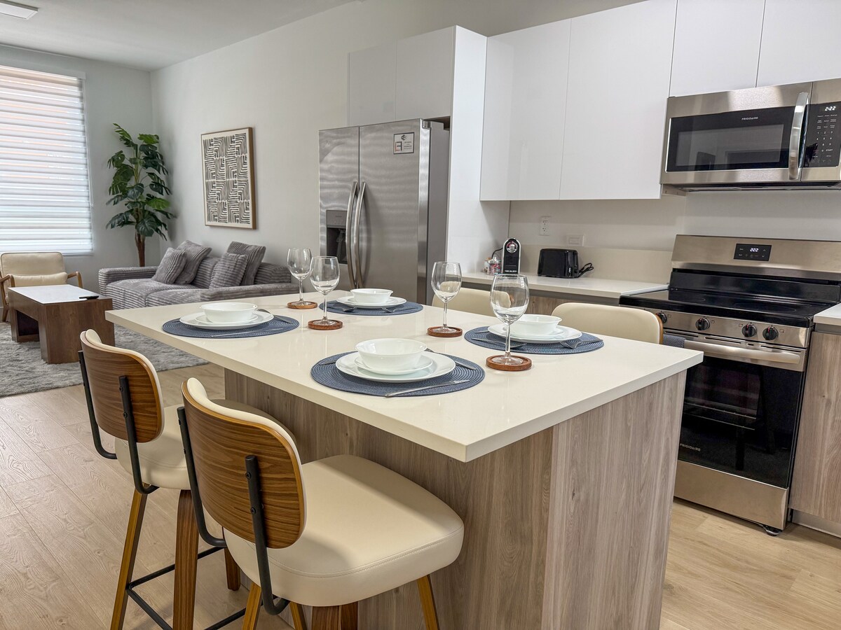 ¡Te damos la bienvenida a tu hogar lejos de casa en Miami! Esta nueva unidad de 2 dormitorios y 2 baños totalmente equipada en el primer piso ofrece comodidad y estilo modernos. Ubicado a pocos minutos de Brickell, disfrutarás de un espacio luminoso y espacioso con una cocina totalmente equipada, aire acondicionado, wifi gratuito, lavadora y secadora en la unidad. Tanto si estás aquí para explorar la ciudad como para relajarte, ¡este es el lugar perfecto para una estancia inolvidable! Disfruta de una experiencia con estilo en este lugar céntrico