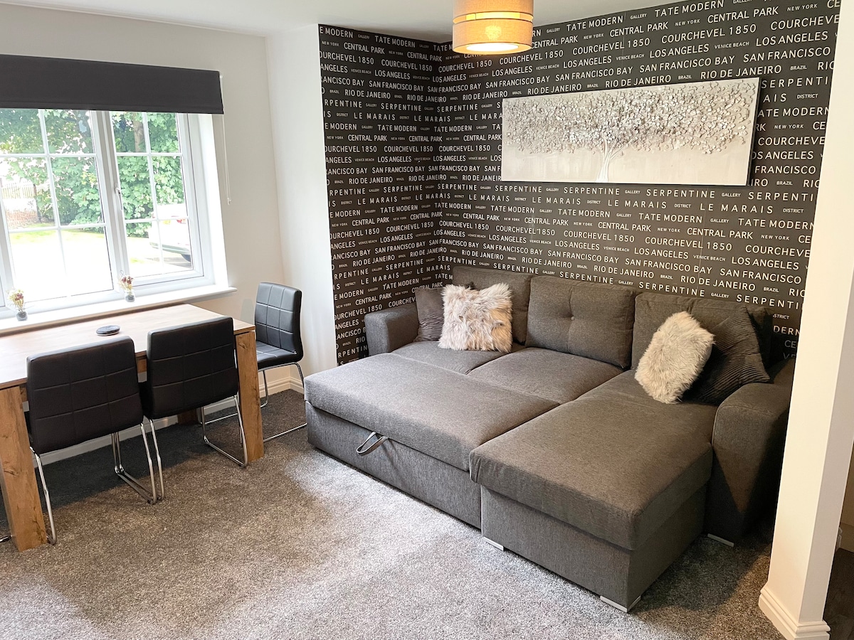 Este apartamento de 2 dormitorios es un hermoso y moderno «hogar lejos de casa» con todas las comodidades útiles. El apartamento Chantry Waters tiene una ubicación céntrica, cerca del centro de Wakefield, la galería Hepworth, Tileyard North, el río Calder y las rutas de senderismo y ciclismo del canal. El parque de esculturas de Yorkshire está a 15 minutos en coche. El apartamento cuenta con aparcamiento seguro en garaje. Estamos a 7 minutos a pie de la estación de tren de Wakefield Kirkgate. El apartamento se limpia a fondo antes de cada uso.