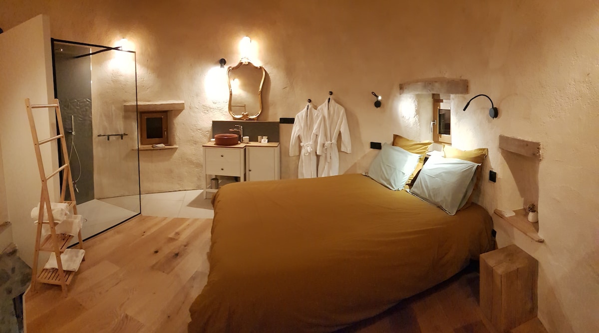 La Tour du Canet es una escapada tranquila en Les Monts du Lyonnais. Pequeñas burbujas para darle la bienvenida y relajarse en el baño nórdico privado. Cálido refugio para los amantes en una torre del siglo XV, desayuno gourmet por la mañana. Y por placer, opcional, delicias locales: cesta de aperitivos para cenar y brunch. La Torre del Canet esconde bien su juego. Detrás de sus piedras antiguas de varios siglos, una casa de huéspedes con encanto pensada para el bienestar y la relajación.