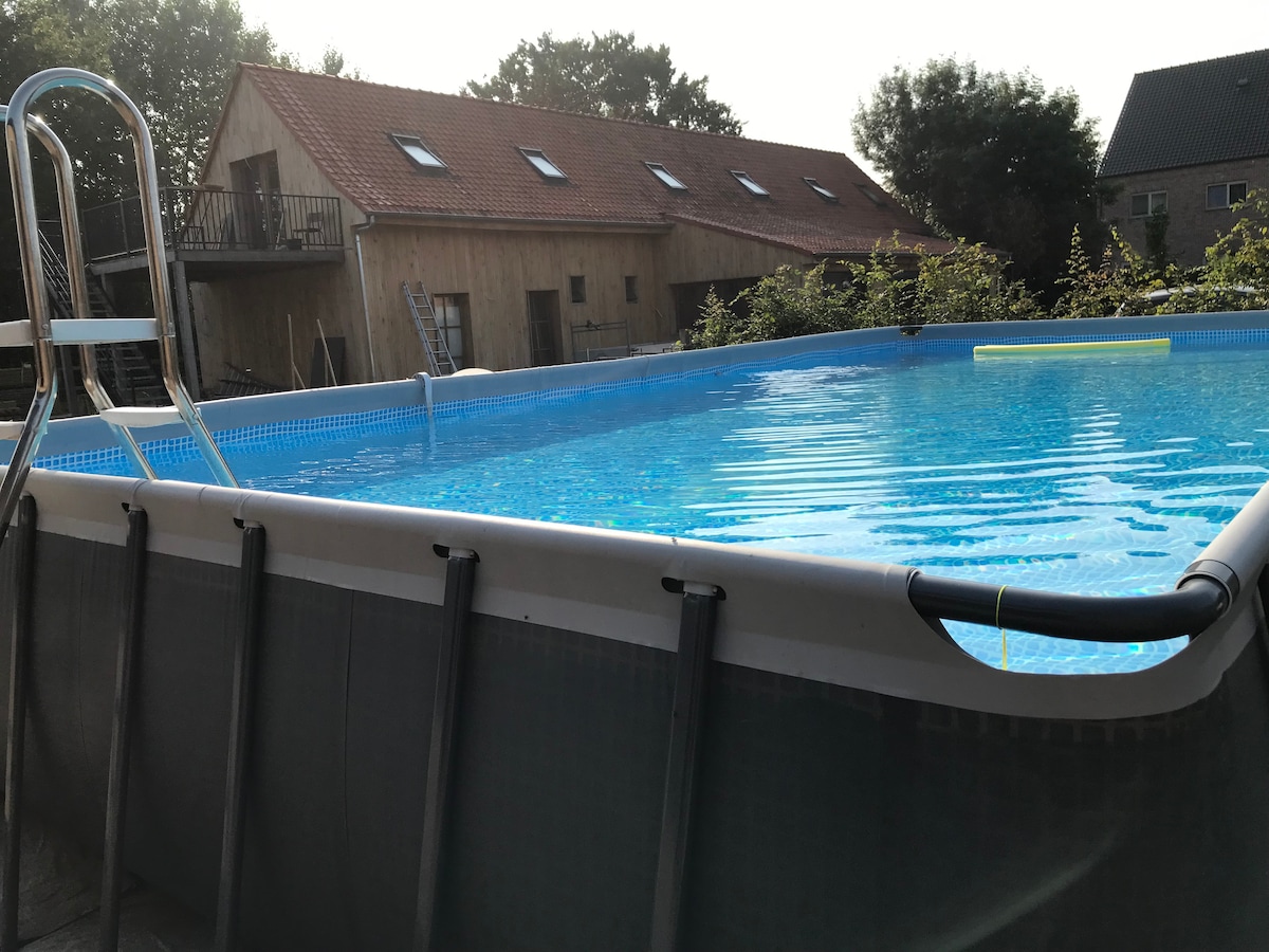 Our assets: A 2,000 m² garden with direct access to the swimming pool. Stay in a guest suite/pool house with Ibiza vibes, including a bar, outdoor kitchen and dining area. Atmospheric evenings with a pellet stove, illuminated pool, hot tub and sauna. A free tandem bicycle available. Central location with easy access to Ghent Antwerp Bruges (also easily reachable by train). A stay that feels pure and relaxing. Our pot-bellied pigs eagerly welcoming you.