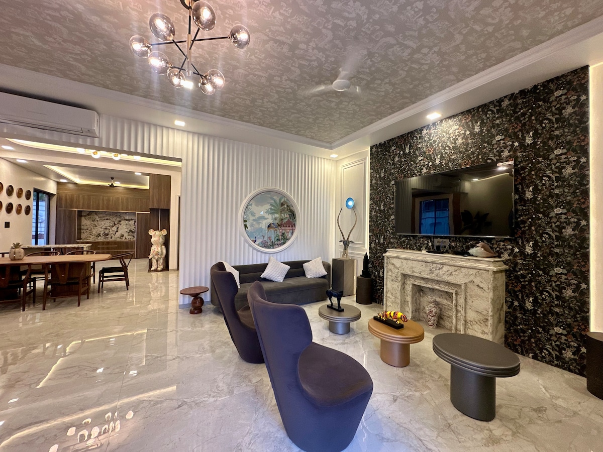 Ansh Villa, ubicada en una ubicación privilegiada de Lonavala, ofrece una combinación perfecta de lujo y serenidad, lo que la hace ideal para parejas, familias, amigos y grupos corporativos. La villa está cuidadosamente diseñada con interiores elegantes y comodidades modernas. Con una piscina privada adyacente a la sala de estar y un cenador en la terraza de la azotea que permite conversaciones llenas de diversión y un ambiente tranquilo, la villa Ansh es ideal para una escapada inolvidable. Ubicado en una comunidad cerrada segura, a 5 minutos del mercado.