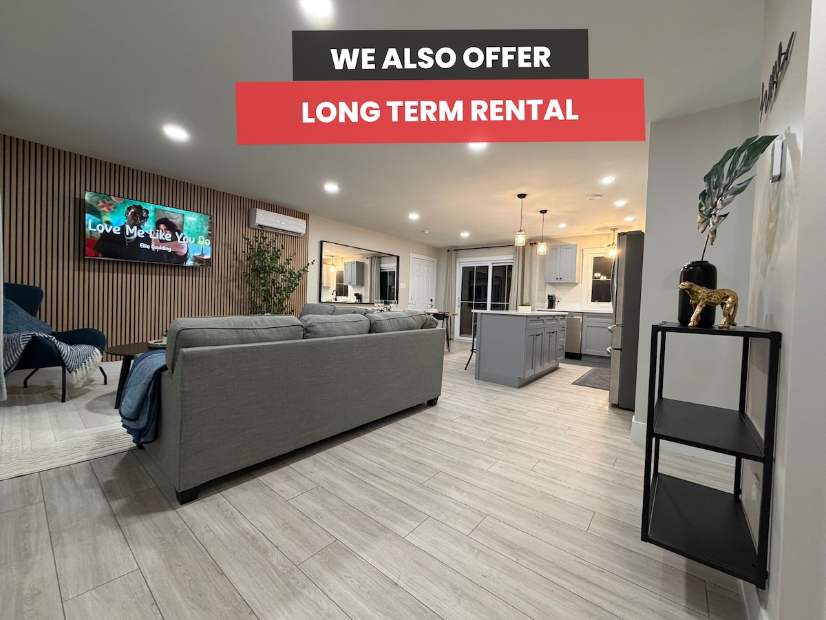 Una suite independiente superluminosa y superlimpia en el primer piso de la casa del anfitrión, ideal para una estancia corta y cómoda de 2 huéspedes con una amplia sala de estar, dormitorio tranquilo, baño completo moderno (sin cocina) y entrada/plaza(s) de aparcamiento dedicada(s). Con el sofá cama en la sala de estar, puede alojar hasta 4 personas. Un proyector de 120 pulgadas está equipado con canales de Bell TV y Crave para el entretenimiento. No hay cocina, pero hay una mininevera, microondas, tostadora y hervidor de agua disponibles.