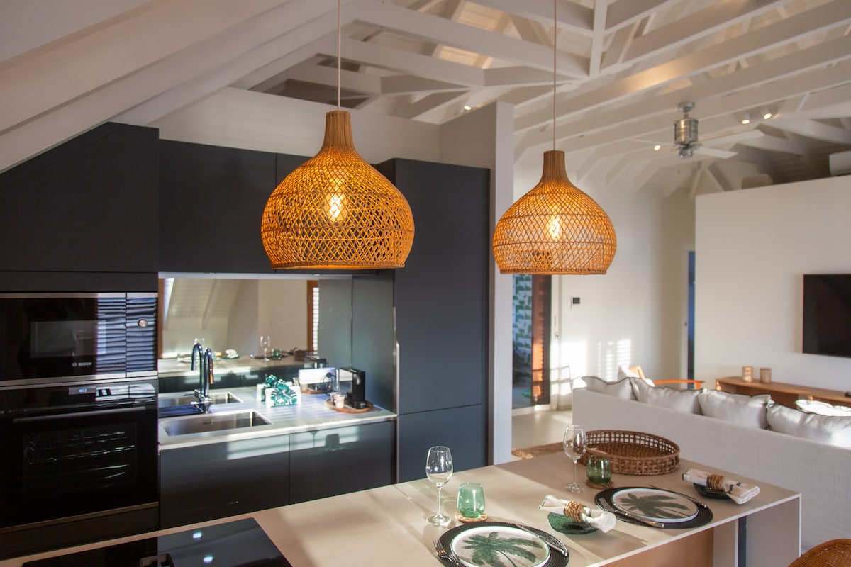 RIDE es una VILLA de 2017 ubicada en la cima de la colina de Anse des Cayes que ofrece una hermosa vista al mar. A 5 minutos en coche de la playa , gustavia (ciudad principal) y una deliciosa panadería. Ofrece tranquilidad y privacidad sin dejar de estar cerca de todo. La villa puede recibir a 4 PERSONAS en 2 DORMITORIOS, cada una con su propio baño privado de madera masiva. La villa también es accesible para personas con MOVILIDAD REDUCIDA gracias a su acceso de un solo nivel.