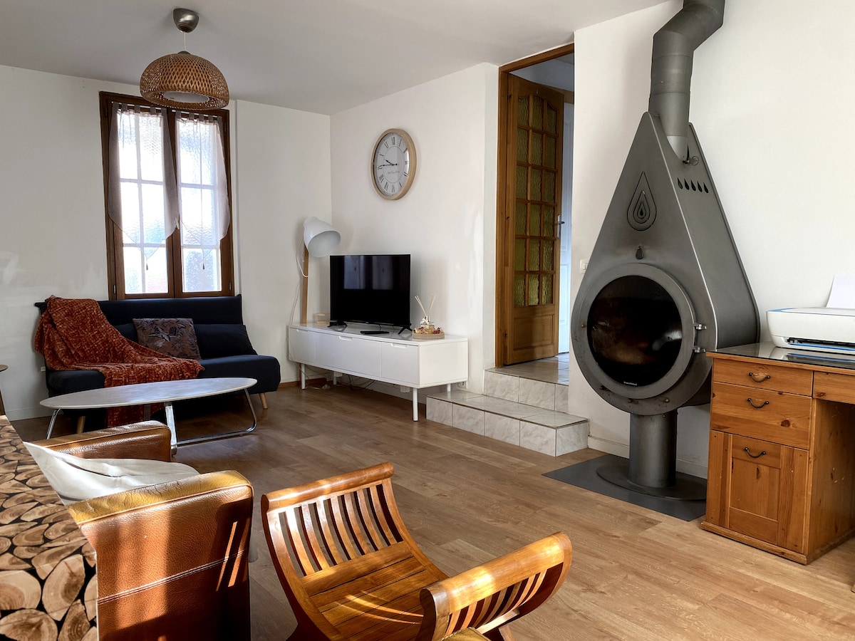 A 50 km de París en Oise. Casa que consta de: 4 dormitorios, sala de estar, cocina equipada. 2 baños, un escritorio, un rellano con todo lo necesario para planchar. Aparcamiento seguro. A una hora de París, a 45 minutos del aeropuerto CDG, cerca del aeropuerto de Beauvais. Cerca de Chantilly, a 1 hora de Disney. 5 km de la estación de tren de Méru