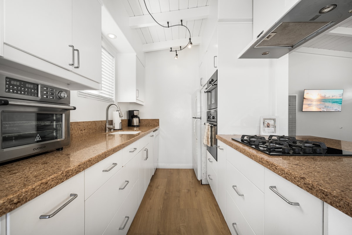 Full rebuild completed in Jan. 2026, this beachfront guest house is tucked off Malibu Rd—away from PCH noise yet walkable to the Malibu Country Mart. Ideal for a couple or a small family, it can sleep 4 and features a private entrance, dedicated parking, washer and dryer and beach access next to property. ✭✭✭✭✭"Such a beautiful beach nest egg!!! The sound of the ocean was amazing. Close to anything I needed. Restaurants, grocery store, gas stations, and shopping. And of course the beach!!!"
