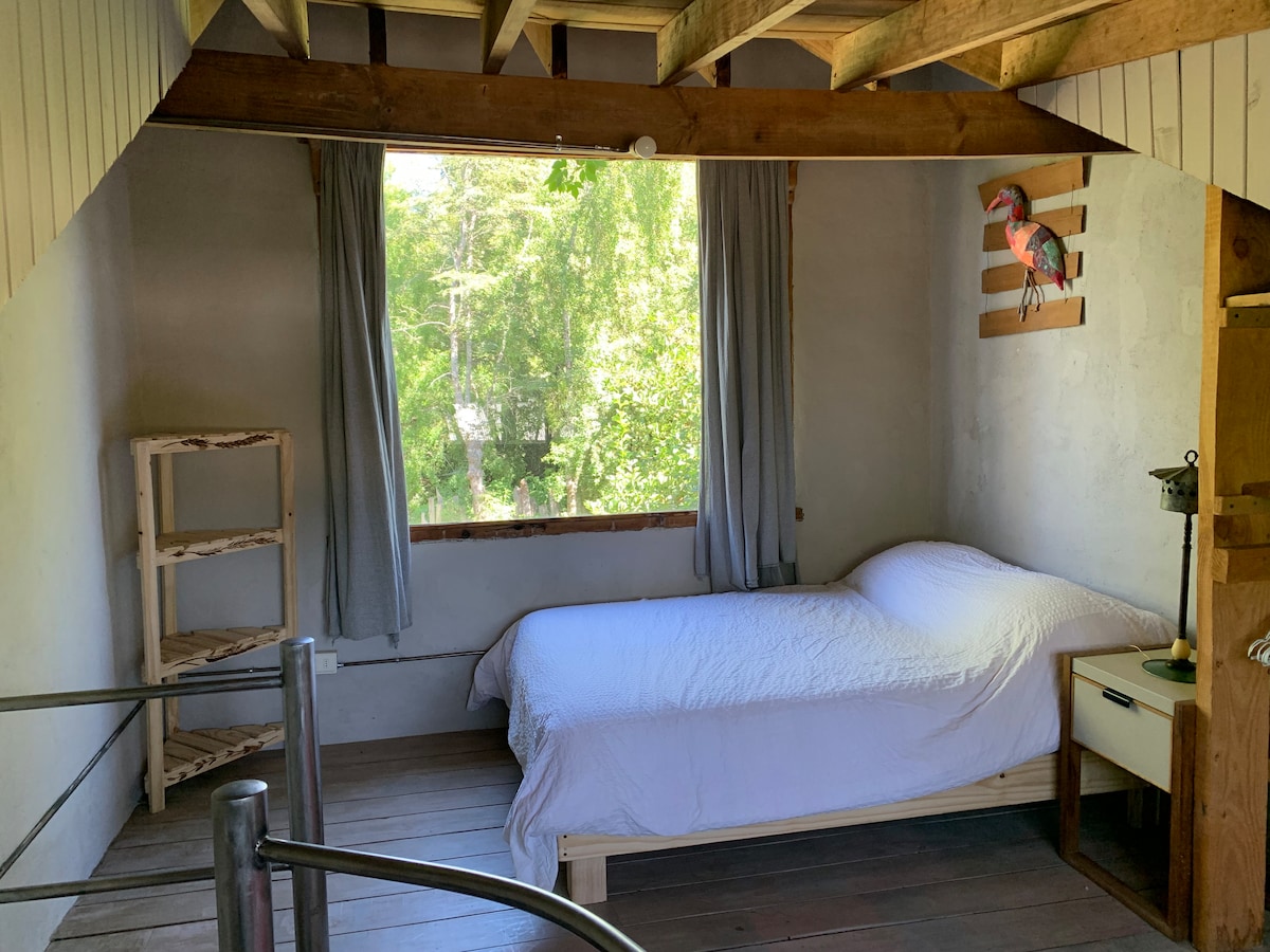 Ubicado a sólo a 500 mts. del centro de la localidad (por calle de ripio) y de las rutas que te llevarán a playas, centro de esquí y localidades vecinas como Bariloche, San Martín de los Andes y cruce a Chile. Contamos con una hermosa vista desde la habitación y el patio. Disponemos de entrada de autos para huéspedes y patio con parrilla (chulengo) . Nuestro alojamiento es bueno para parejas y familias (con un hijo). No recomendable para niños pequeños o personas con movilidad reducida.