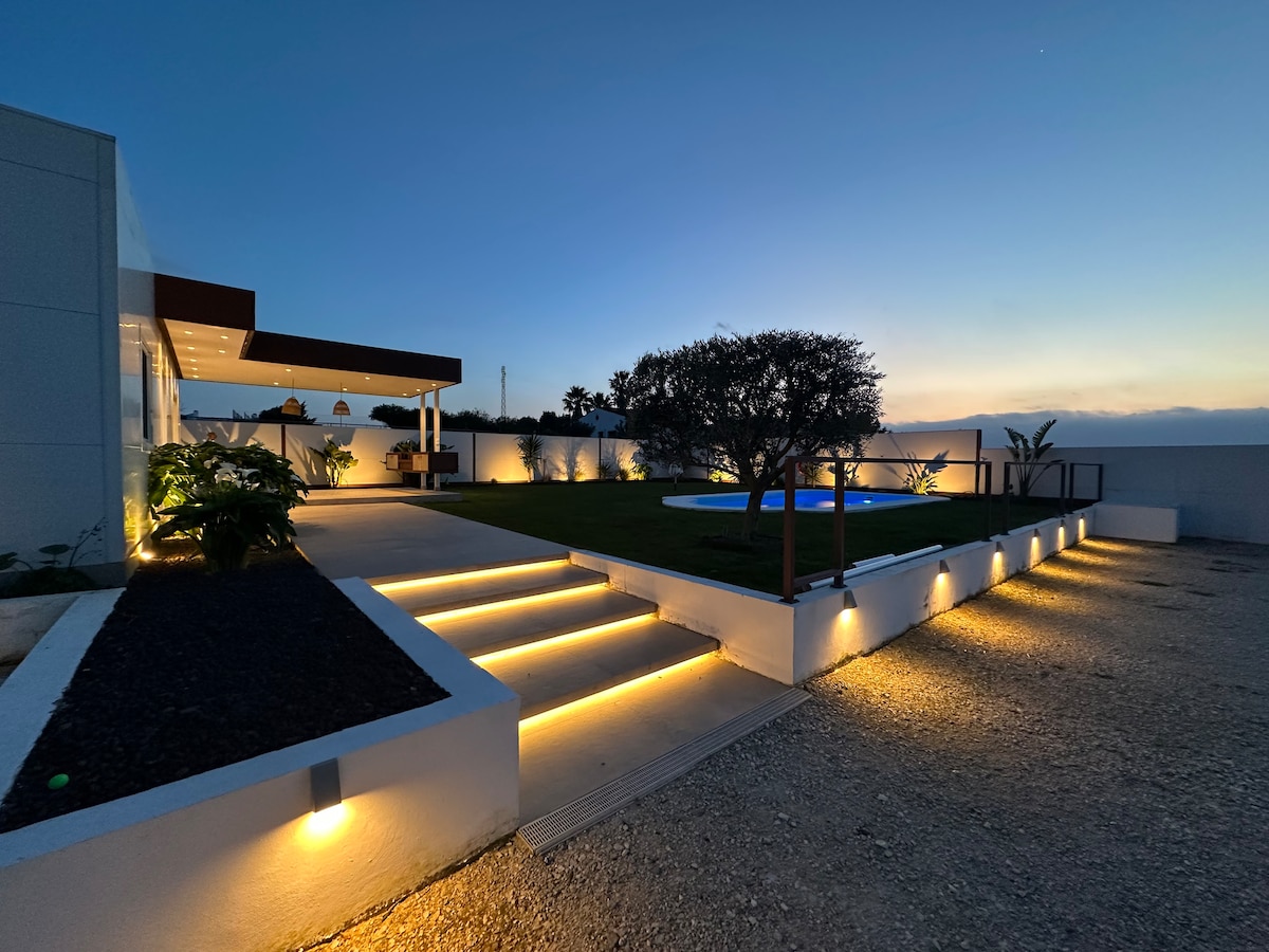 Precioso chalet a pie de playa en la Urbanización de Roche, en Conil, Cádiz. Se alquila todo el año y tiene capacidad para hasta ocho personas. Hay Internet WiFi y Netflix. La casa, de ciento cincuenta m2 (doscientos incluyendo terrazas) y 600 m2 de jardín, es una construcción de teja típica andaluza total y perfectamente equipada y decorada con estilo, para el máximo confort y disfrute. Está a sólo 50 metros de la playa. Tan cerca que se puede bajar descalzo.
