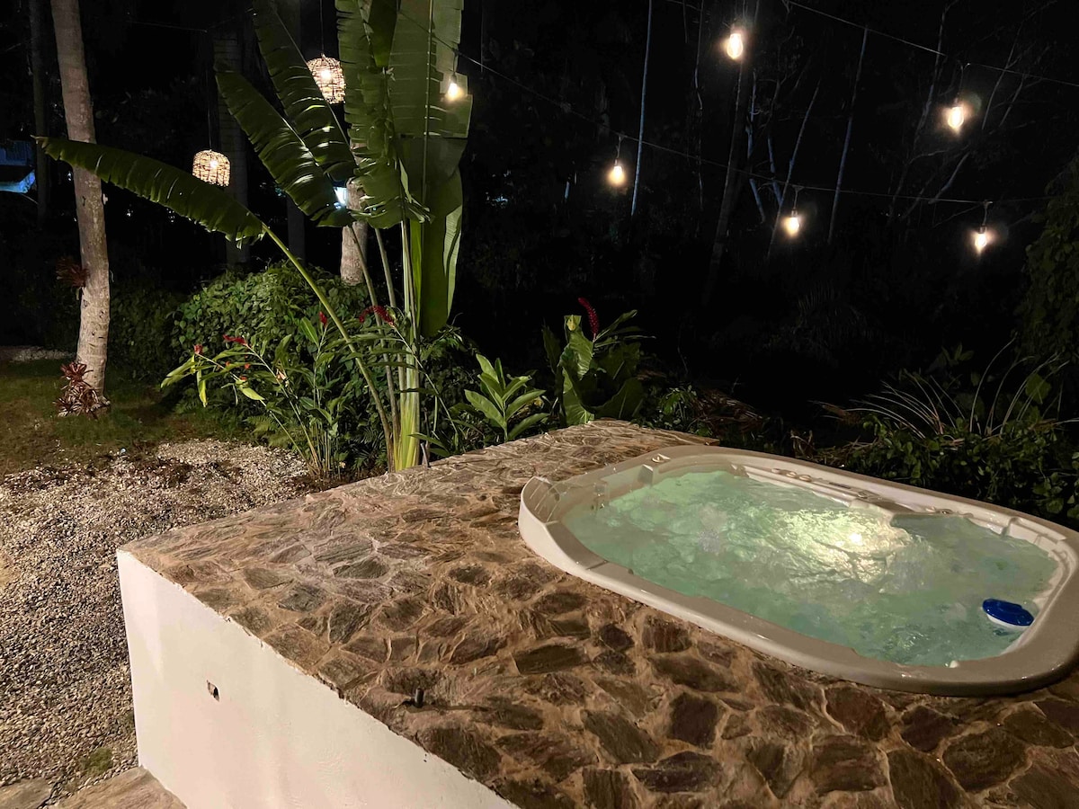 Disfrute de nuestro nuevo y tranquilo estudio que cuenta con un impresionante patio con vistas a la selva. La cocina moderna y totalmente equipada cuenta con mucho espacio en el gabinete y el elegante baño tiene una ducha de vidrio y un bidé de pared. Un armario grande hace que las estancias prolongadas sean fáciles. Un paseo de cuatro minutos a través de los jardines del bosque trae calma, hermosa Playa Ballenas-senderismo, SUP, kayak, vela, snorkel, sorbo, esta playa lo tiene todo. NOTA: Este estudio es parte de una casa más grande y tiene una entrada privada de un tramo de escaleras hacia abajo.