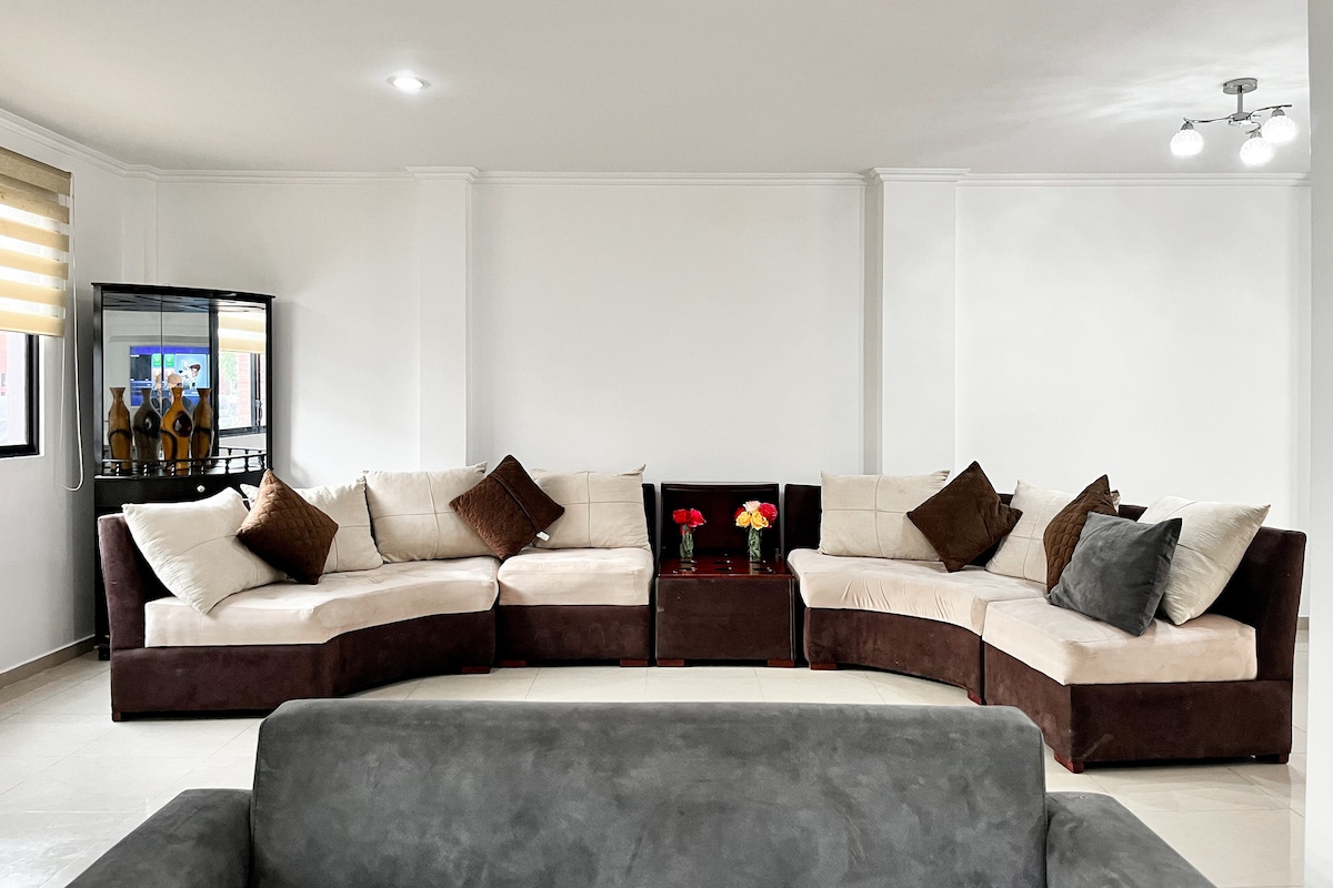 ✔️ SuperAnfitrión Verificado ¡Tu estadía estará en las mejores manos! Apartamento en Samborondón, Ecuador 📍Excelente ubicación 🏡 Espacio limpio, cómodo y seguro. 💬 Estoy disponible para ayudarte durante toda tu estancia. 🔑 ¡Reserva hoy y siéntete como en casa en Samborondón! 👨👧👧 Ideal para todo tipo de turistas El apartamento ofrece: 🌐 Wifi 📺 TV 💻Zona de trabajo 🌬️Aire acondicionado 🚗Estacionamiento 💦Piscina 🎬Sala de cine 🌸Secadora 🥇Gimnasio 🏸Cancha Squash