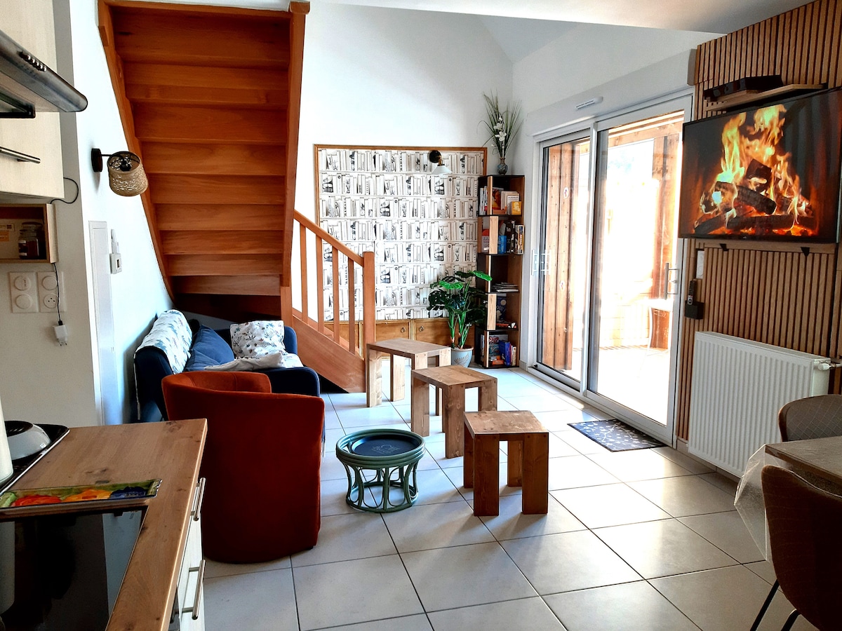 Mi apartamento está cerca de todos los servicios, ¡olvídate de tu coche! ¡El telecabina SKYVALL está a 5 minutos andando, el acceso al lago y a Balnéa está muy cerca! Le va a gustar mi alojamiento, clasificado amueblado de turismo 3*, por su ubicación con vistas a los tejados del pueblo, la montaña y los parapentes. En una decoración cálida y acogedora, pequeños y grandes encontrarán su felicidad, wi-fi, juegos para toda la familia, libros para niños, música, trineos están disponibles.