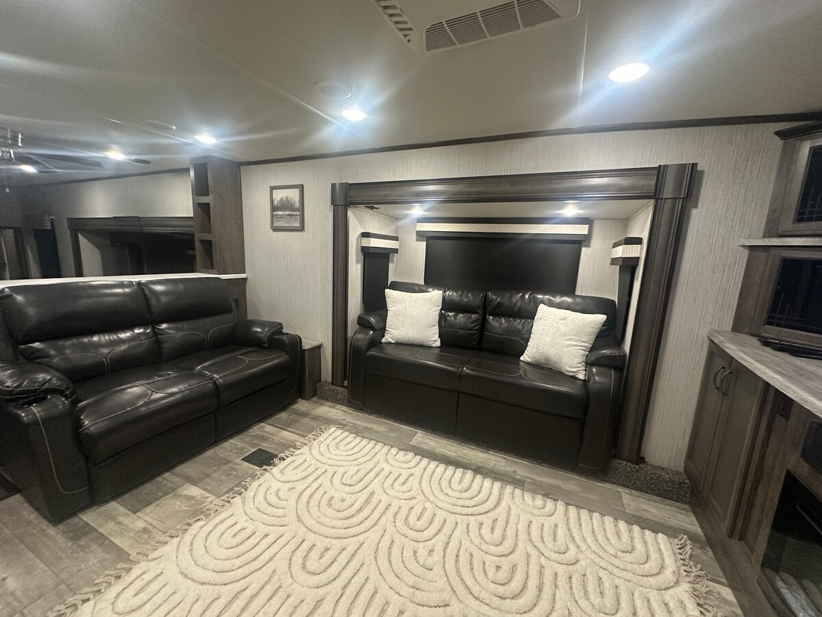 The Perfect getaway and Extended Stay Relax in this centrally located guest suite at The Connect featuring a king bed, twin daybed, and optional air mattress for four. Enjoy a kitchenette, full bath, and direct access to the retreat patio with sun loungers, your own fire pit, and outdoor amenities including a grill, cornhole, disc golf, and a small fitness area. Just 2 Minutes from WinStar, this peaceful space is ideal for getaways, concerts, and quiet recharge stays