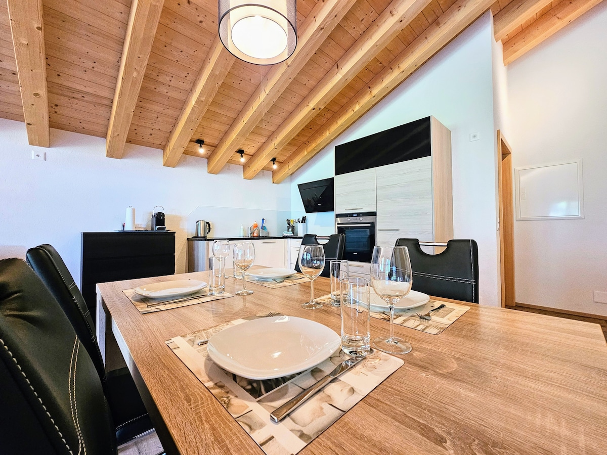 Sichere dir diese moderne, stylische Unterkunft für deine Auszeit mit Familie und Freunden. Atemberaubender Balkon mit Traumsicht auf See und Berge. 💛 🛏 3 liebevoll eingerichtete Zimmer 🛁 Highlight - nur bei uns: freistehende Badewanne mit Blick auf See 🛁 ein grosses Badezimmer mit WalkIn-Dusche & Badewanne 🛁 zusätzliche separate Toilette 🍽 Voll ausgestattete Küche ☕ NESPRESSO-Kaffeemaschine 🧺 Waschmaschine und Trockner
