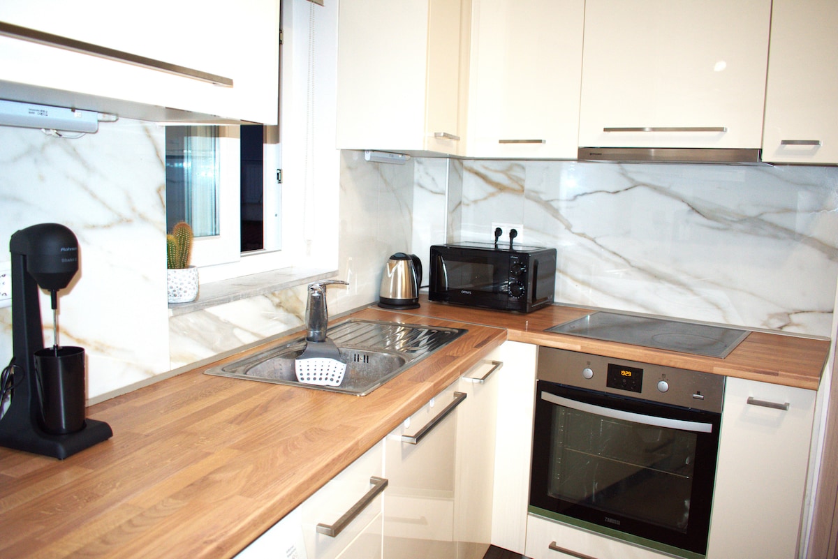 Elegante estudio recién renovado a solo 10 minutos del centro de Tesalónica Diseño inteligente, experto, con ambiente isleño, un verdadero oasis en medio de la ciudad. Cocina totalmente equipada, máquina Nespresso, calefacción de gas, internet de fibra óptica de alta velocidad con hasta 300 MBps, cuenta de Netflix. Ideal para viajeros de negocios y turistas. ¡Bienvenido y disfruta de tu estancia!