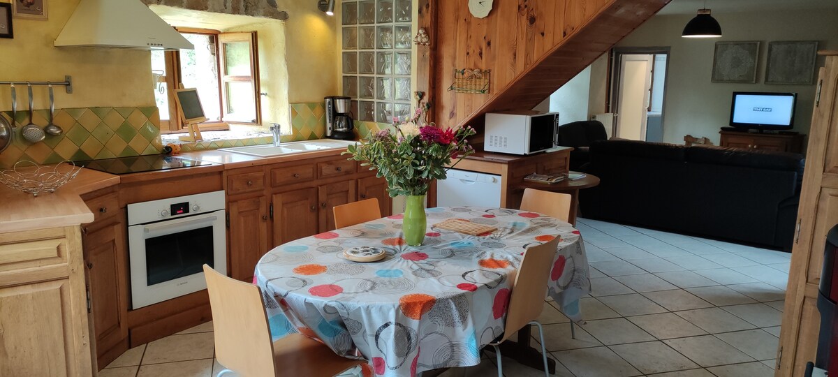 Una casa cálida en el corazón de la meseta de Aubrac, vasta y deslumbrante, en Ventajoux -Saint Urcize. Esta casa es una construcción del siglo XIX totalmente renovada recientemente. Es muy moderna pero conserva su encanto con su estilo del siglo XIX. Una casa excelente para unas vacaciones en familia y con amigos con un descanso asegurado gracias a su tranquilidad con el gran jardín, También puede seguirnos en Face Les cailloux