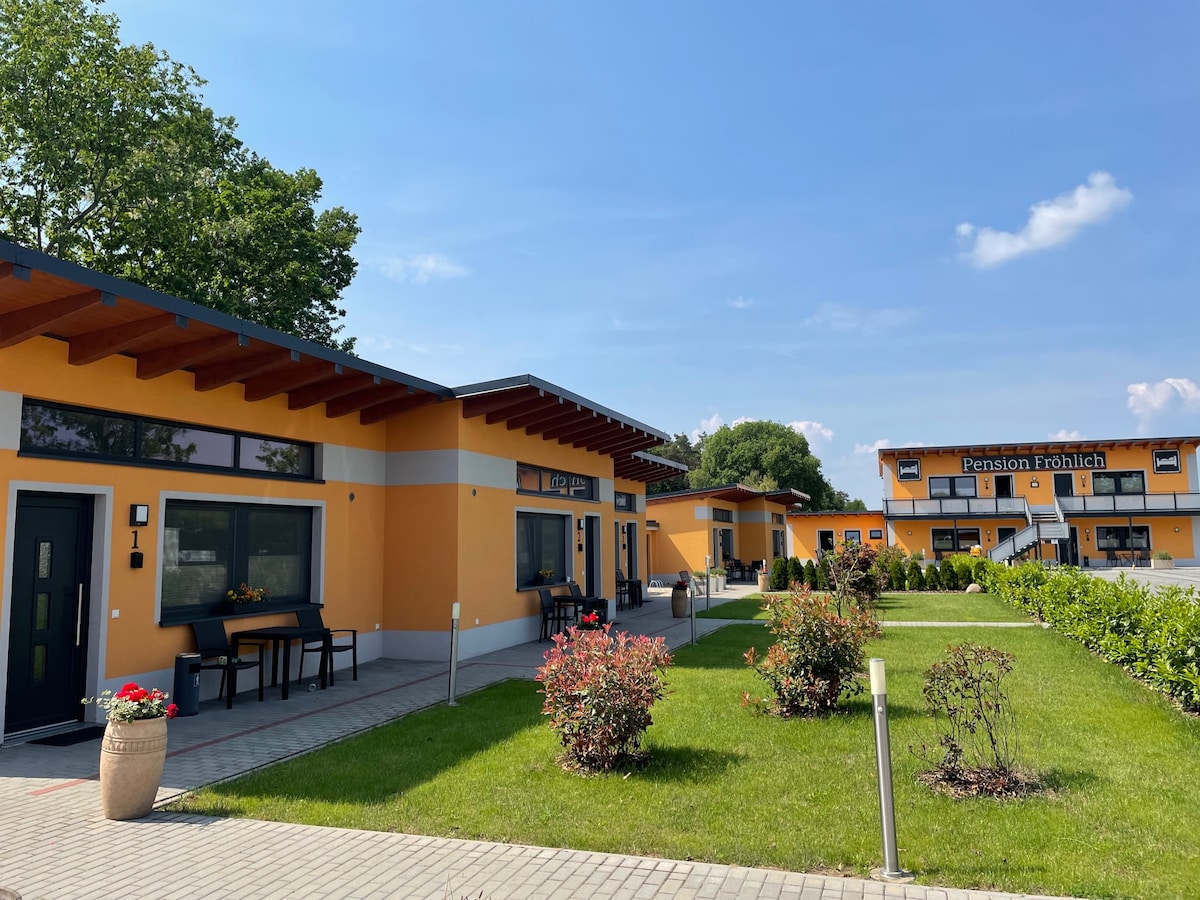 ¡Bienvenido a nuestra pequeña y encantadora casa natural, escondida en el corazón de la naturaleza! Rodeado de un amplio y exuberante jardín, este pequeño paraíso ofrece el escenario ideal para unas vacaciones relajantes o una escapada corta lejos del estrés diario. Está a 2 minutos a pie del hermoso y cristalino lago Plessower. Por fin, la paz... Solo se oyen sonidos de la naturaleza, aves acuáticas, ranas, zorros y erizos.