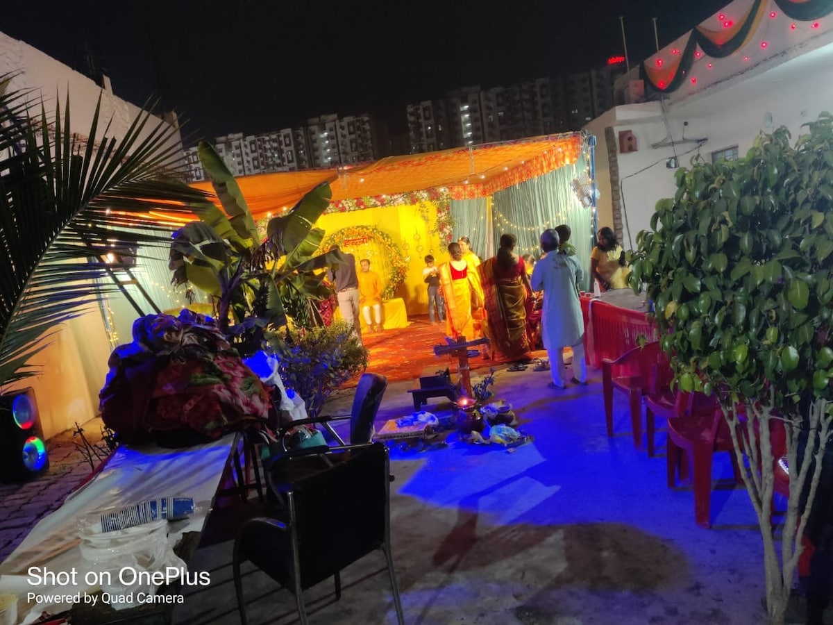 Relax with the whole family at this peaceful place to stay. It's location is near Airport and easily accessible to Railway station and near by highway towards Prayagraj and Kanpur. We have a spacious Garden as well for Children and adults to play and do yoga activities in a peaceful environment and surrounding as well as many more appreciable facility at venue. we have a 500sqft AC hall as well for any kind of extra gathering or any kind of function, party, birthday and many... contact for more.