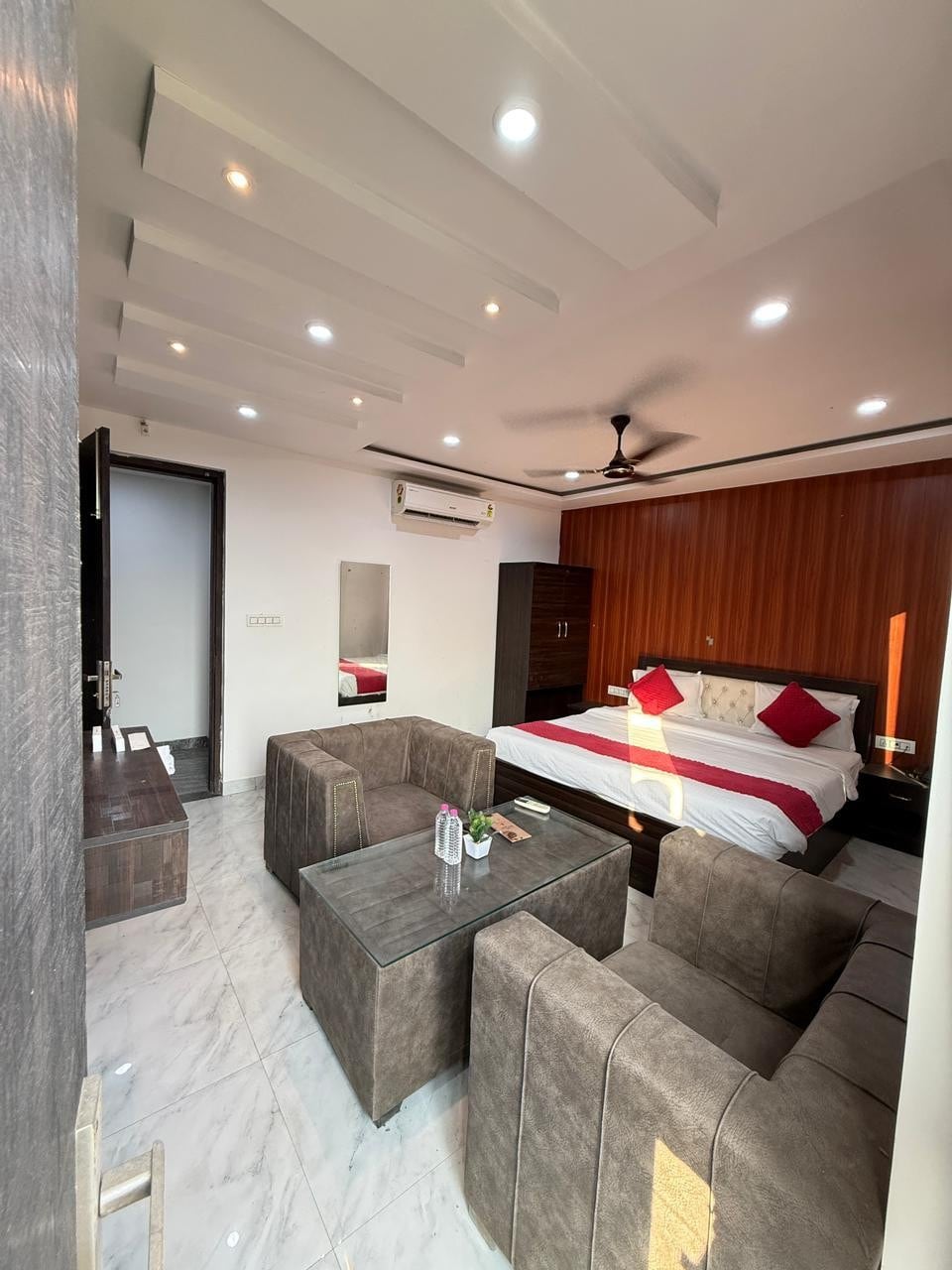 Welcome to my cozy and modern stay at Omaxe Hajratganj - a perfect blend of comfort, elegance, and city charm. The room features a clean, modern design with smooth lighting.